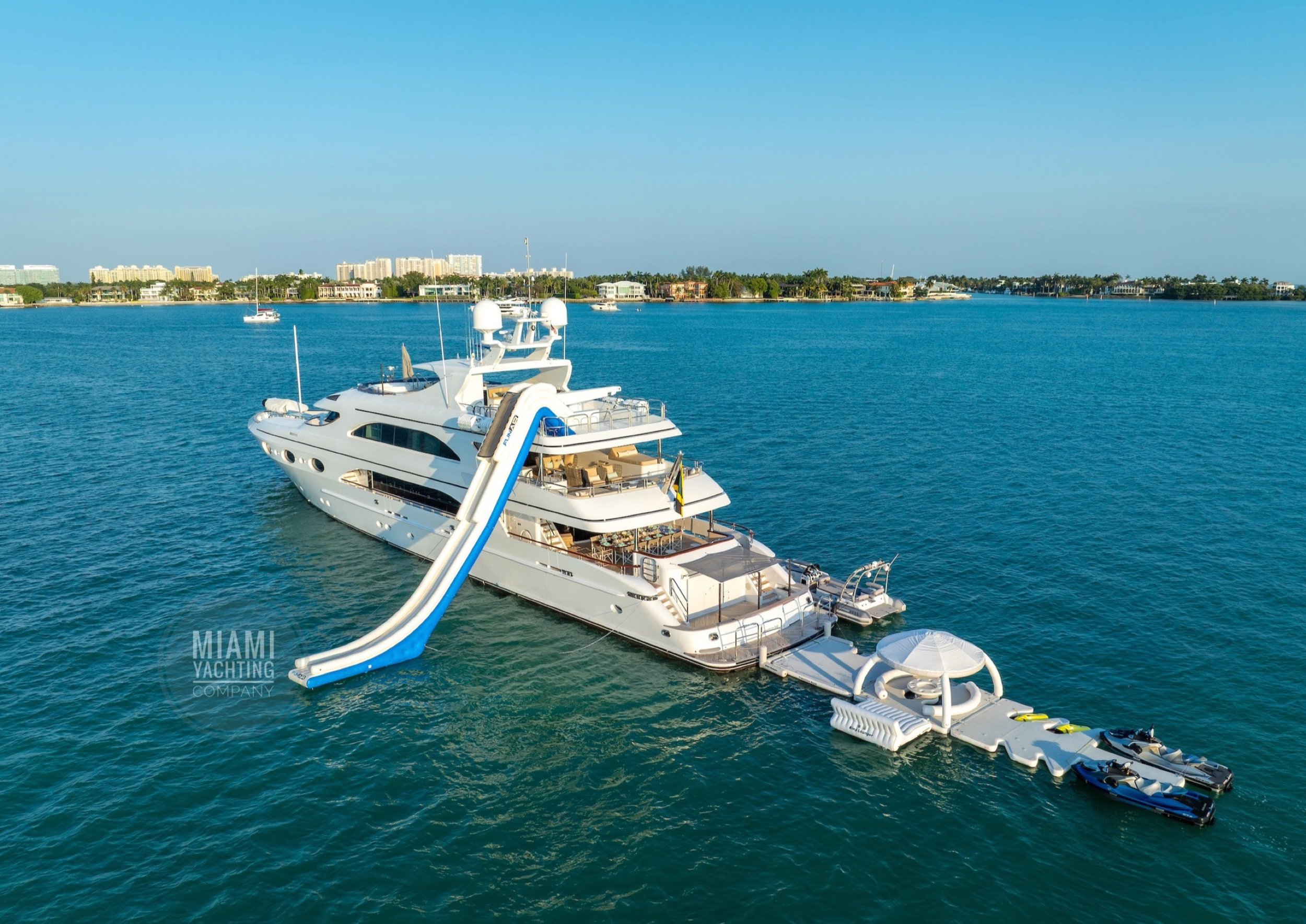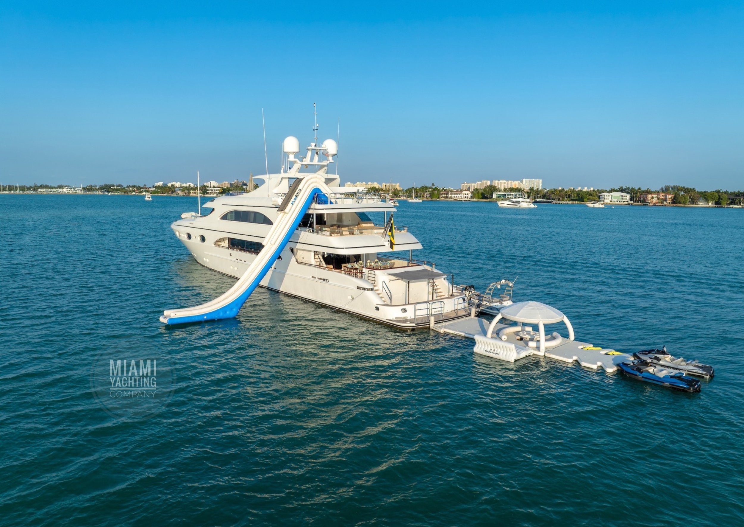 This stunning yacht is also available for overnight term charters to the Bahamas. Explore iconic destinations like Nassau, Staniel Cay, or Bimini for shorter escapes. Whether you're discovering hidden coves or island-hopping by Jet Ski, this Trinity yacht offers the perfect platform for both adventure and tranquility.