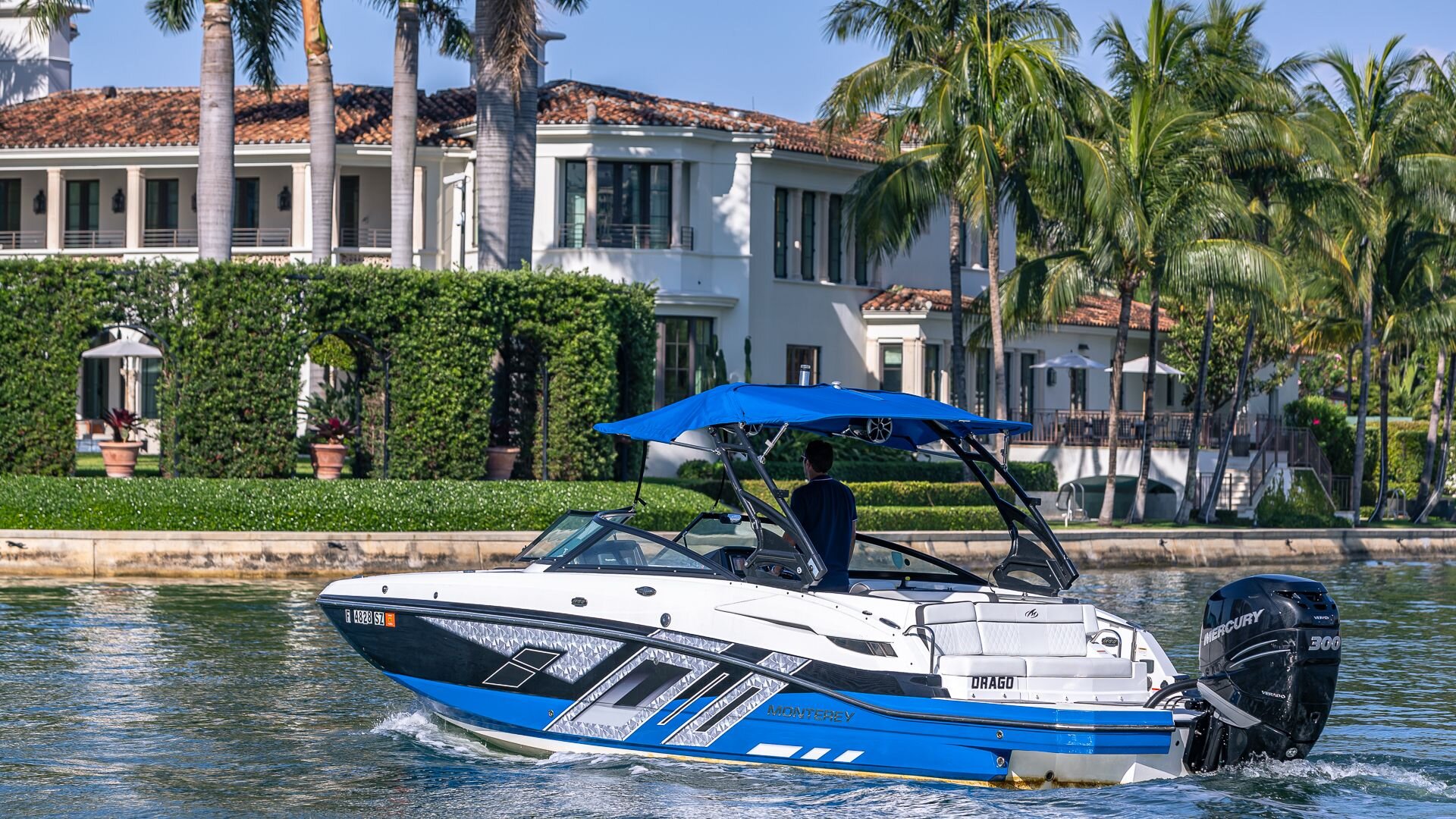 Climb aboard this new 27 ft Monterey boat for an exhilarating Miami boat rental in the waters of miami beach. Modern and comfortable, she is perfect for smaller groups and can accommodate up to 6 guests. Relax on its custom seating areas, turn up the stereo as the boat glides through the water of Miami. Sightsee the best Miami and South Beach have to offer with an amazing day on the water. This Miami Boat rental can come with a tube for water sports fun! PLease request the water sports toys to be onboard prior to your boat leaving the dock.