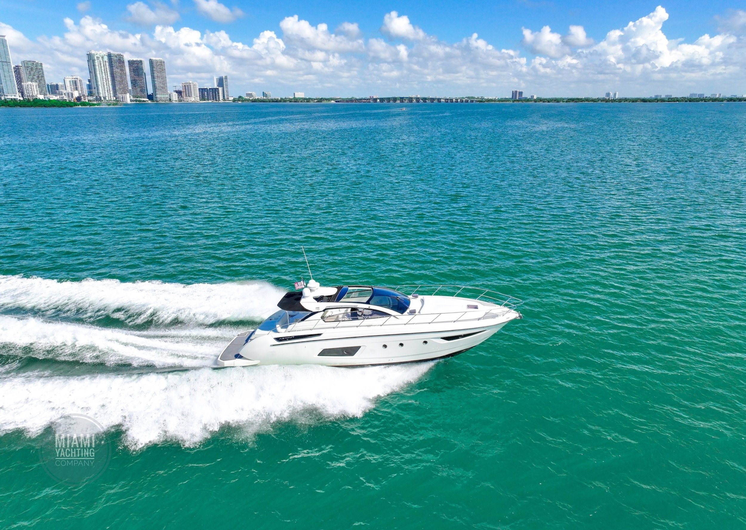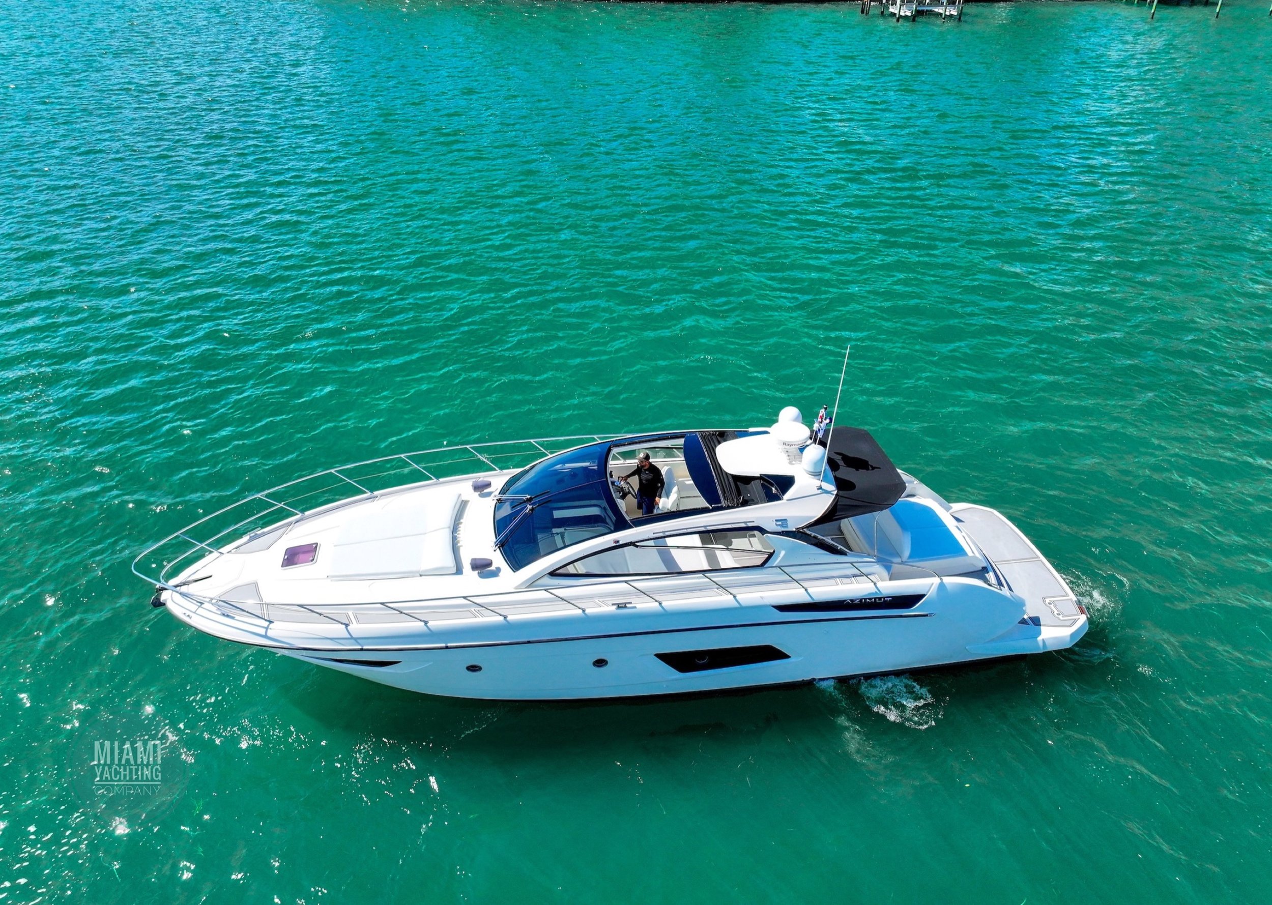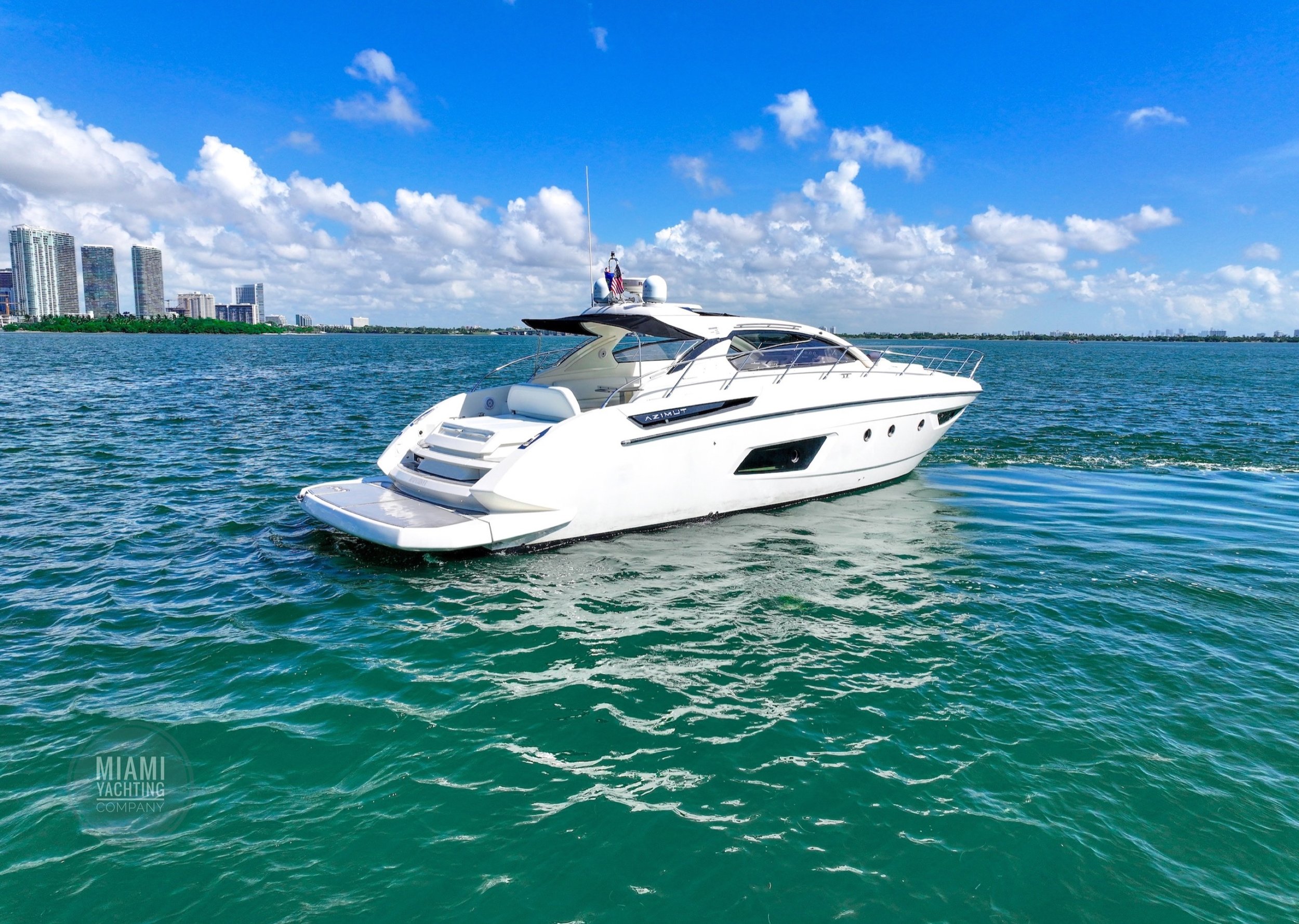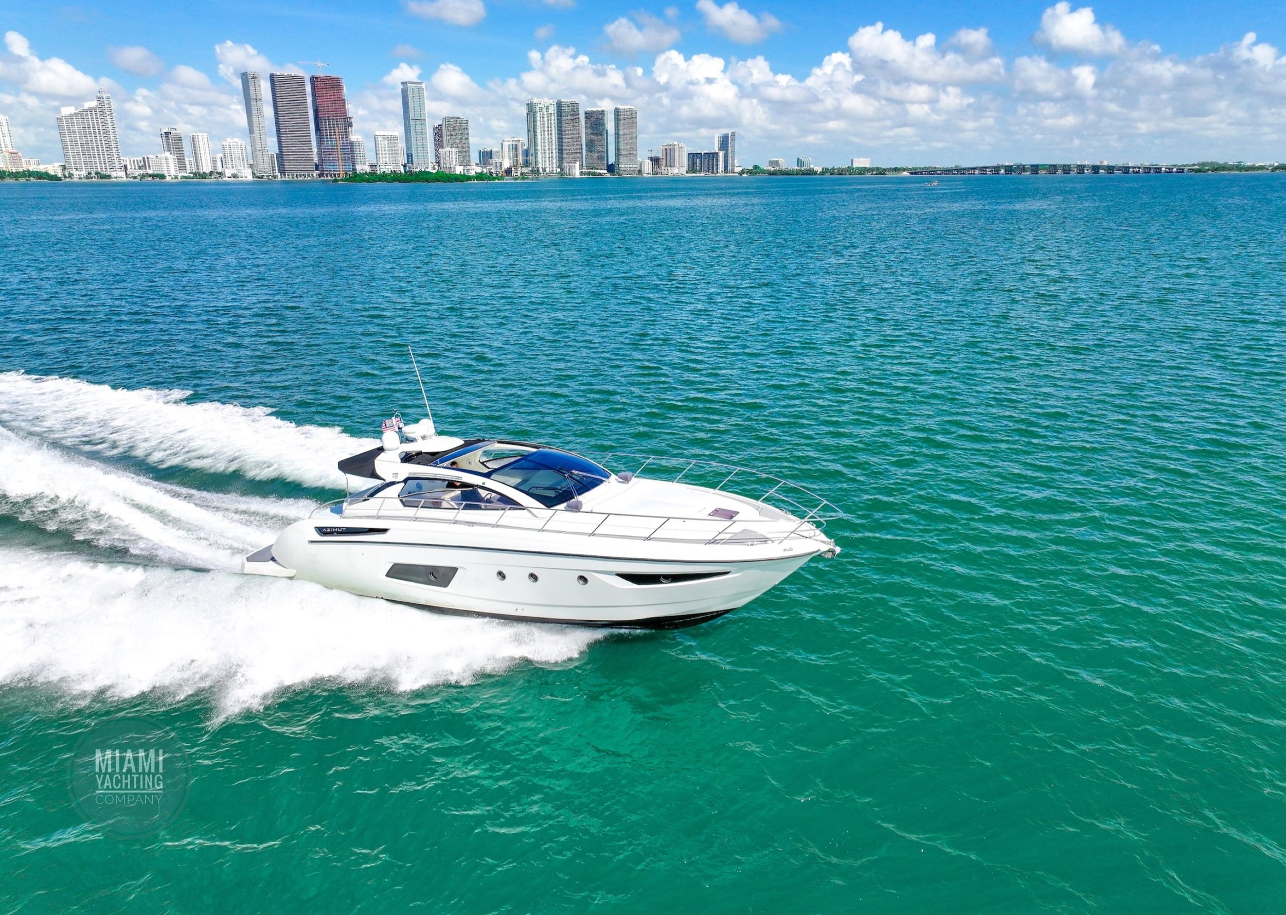 Departing from Miami, this sleek Azimut is ideal for cruising through Biscayne Bay, relaxing at a sandbar, or pulling up to the Miami River for a dockside lunch.
