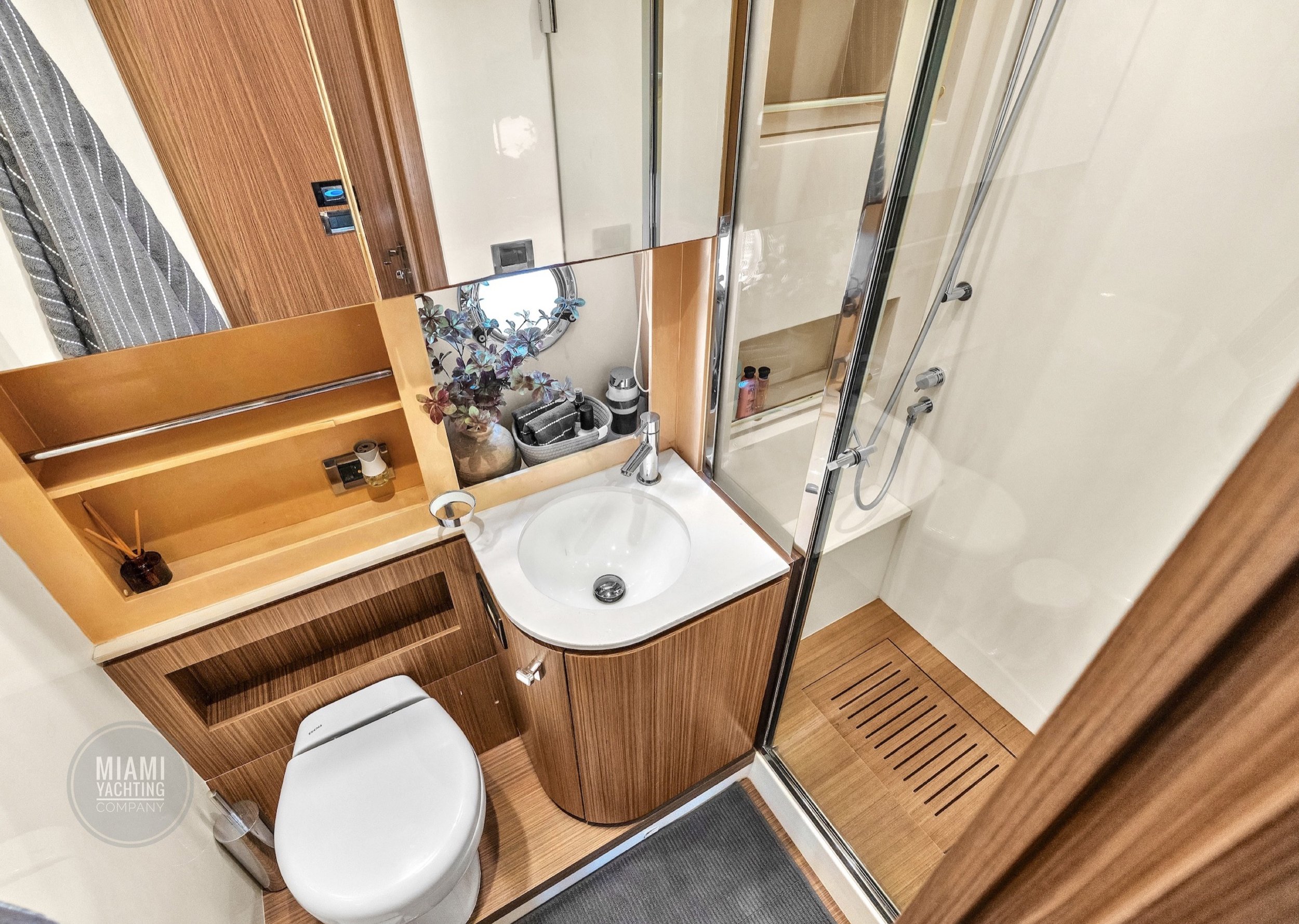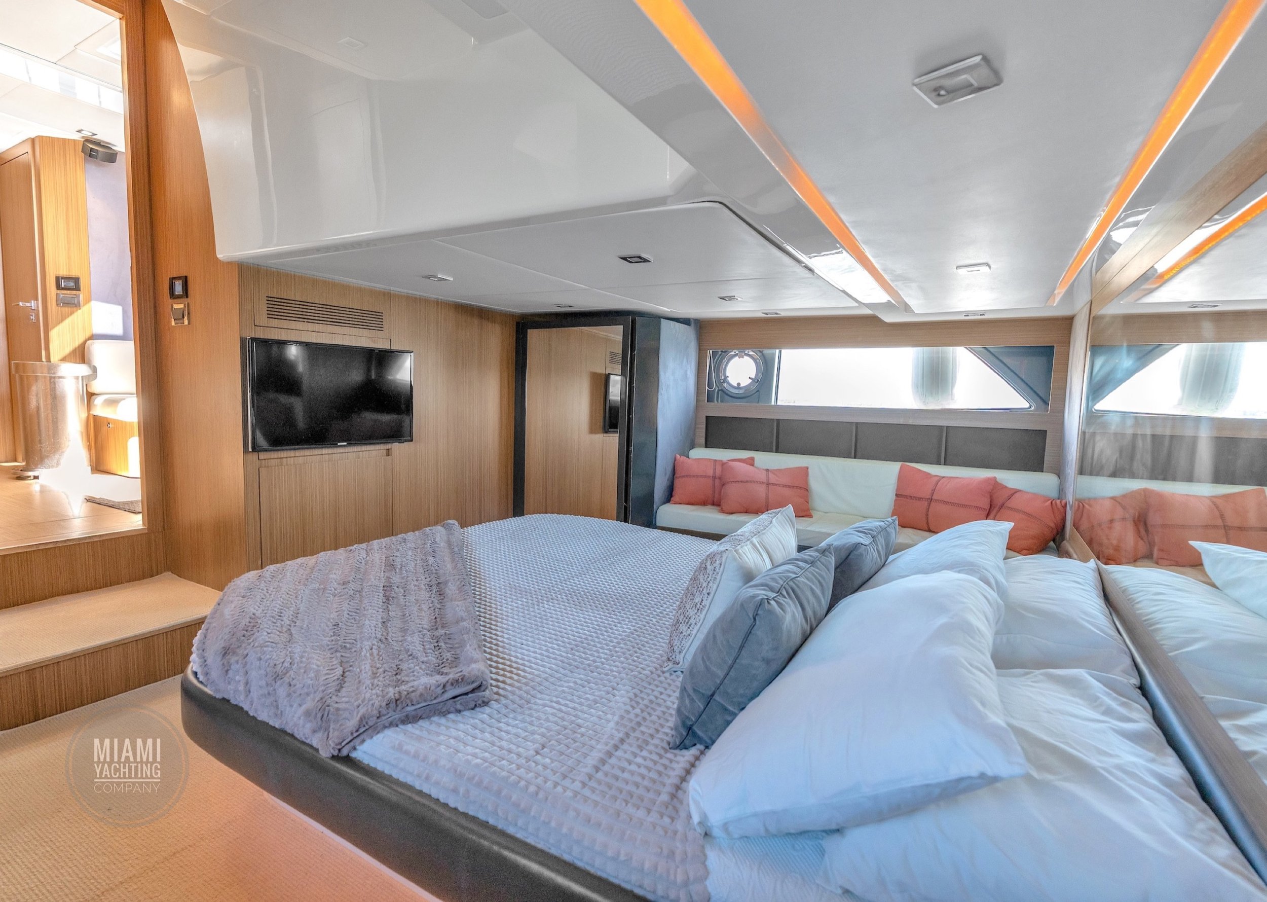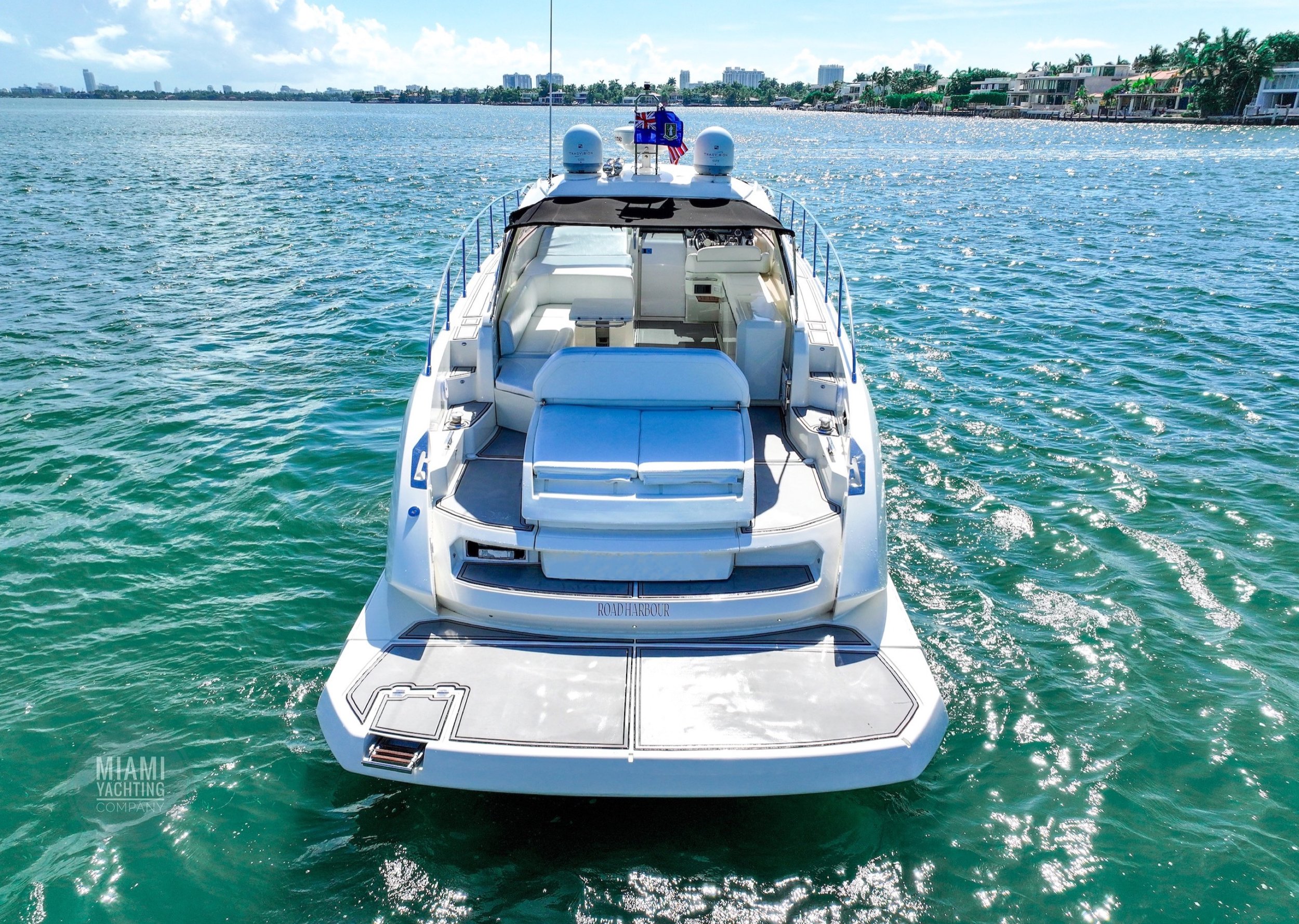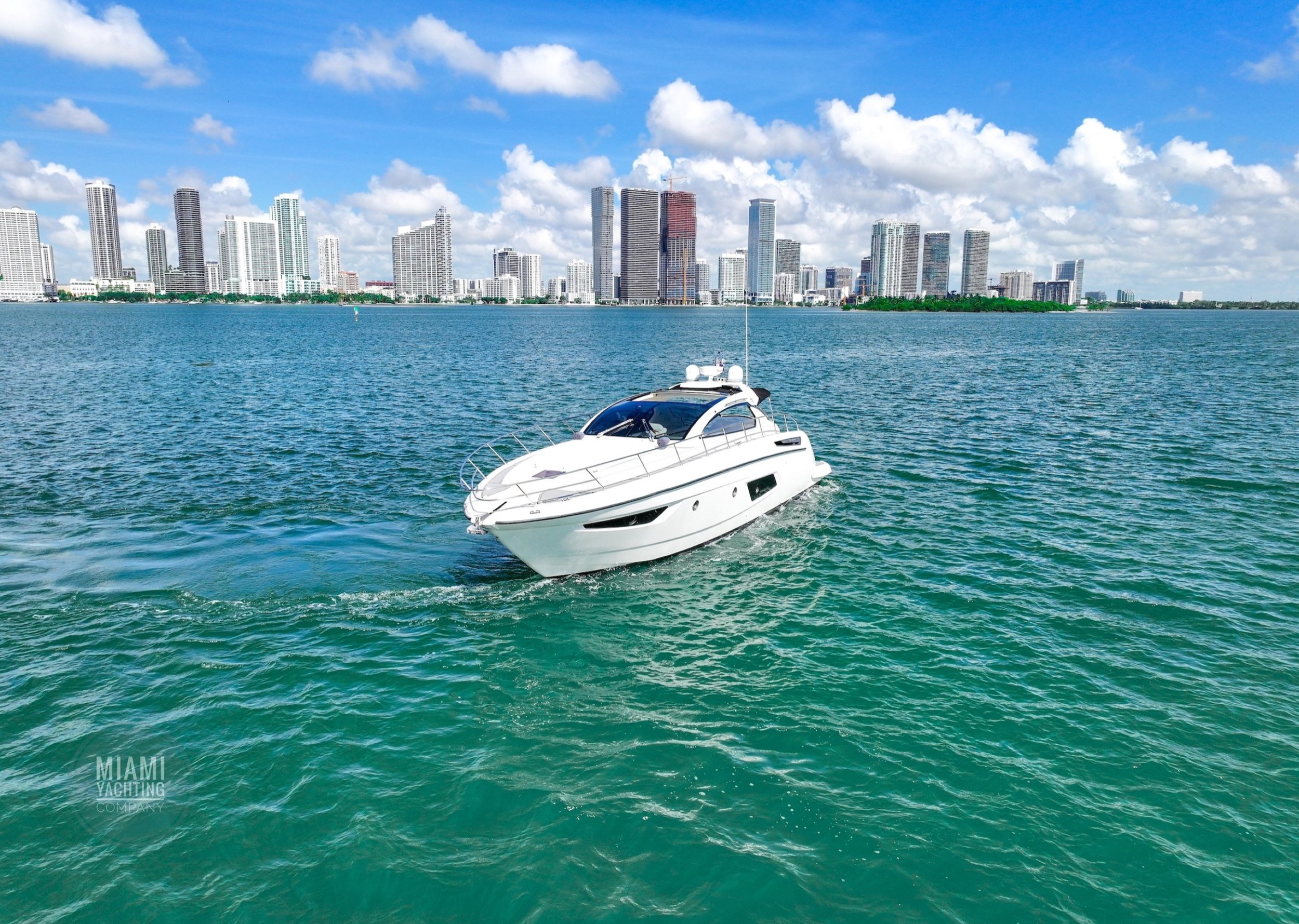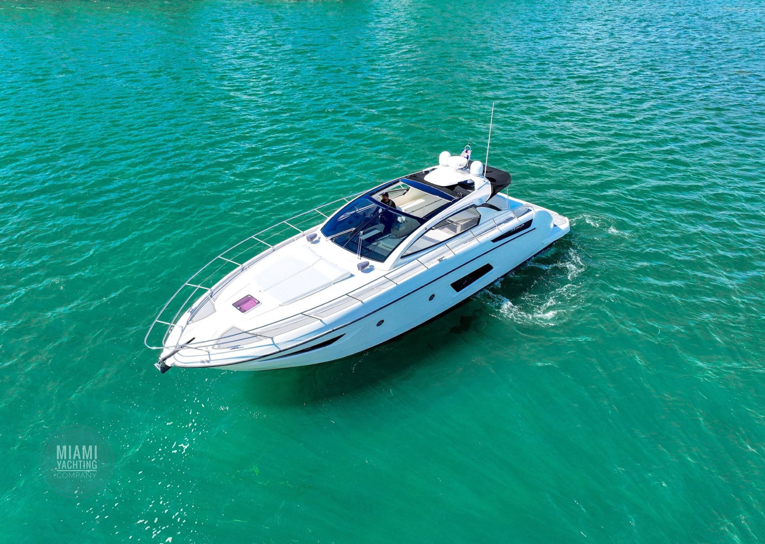 Departing from Miami, this sleek Azimut is ideal for cruising through Biscayne Bay, relaxing at a sandbar, or pulling up to the Miami River for a dockside lunch.