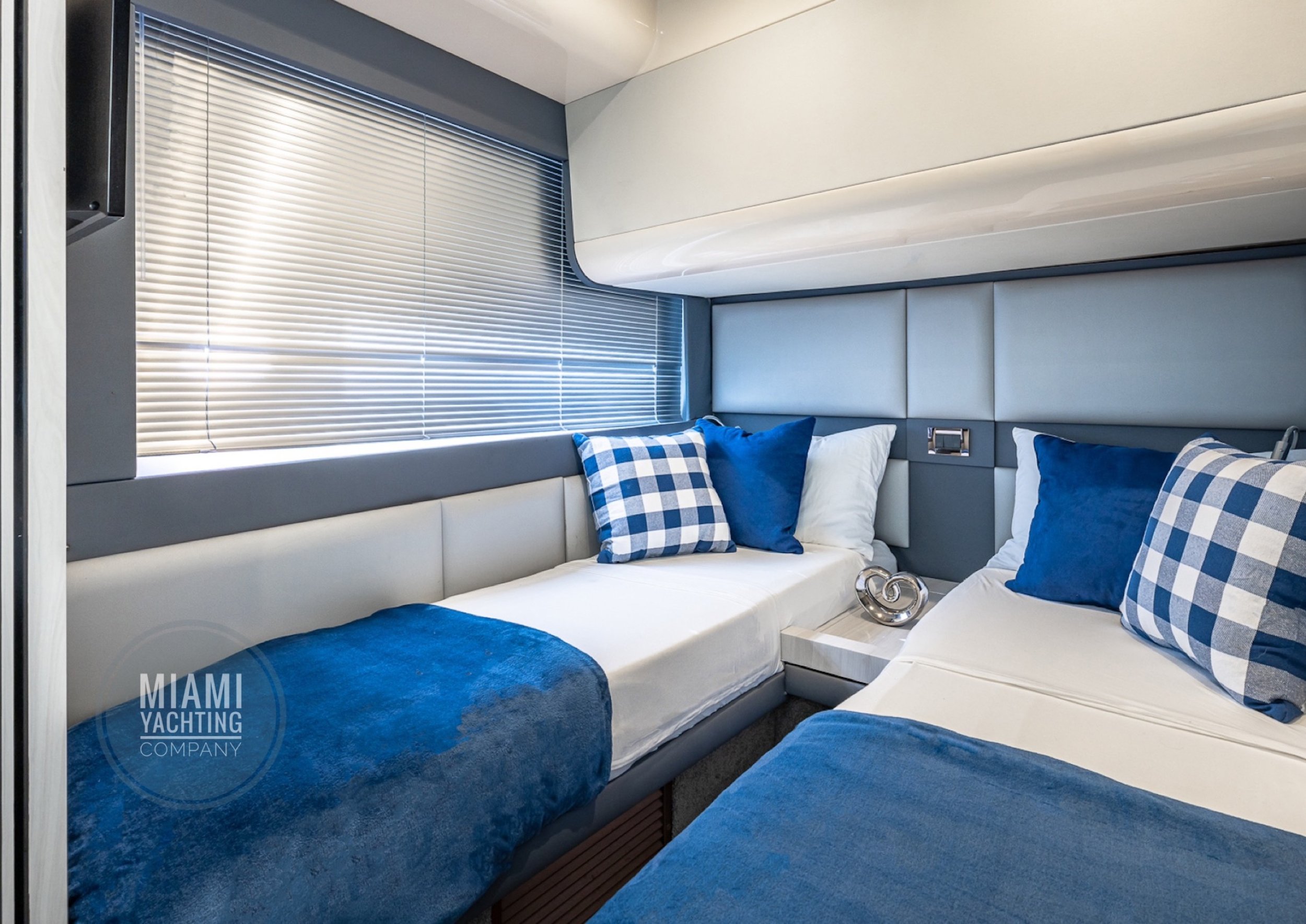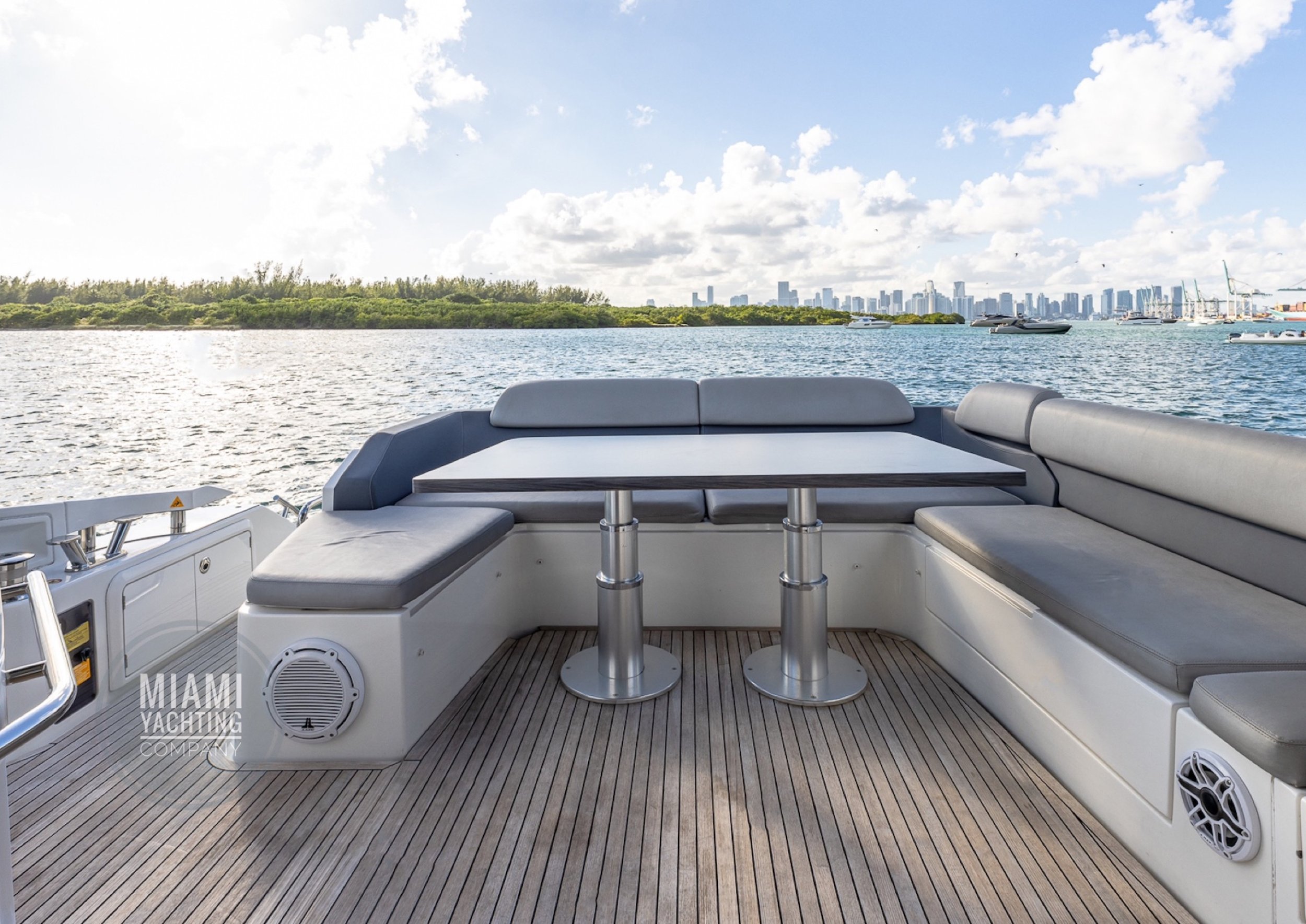 Cruise along Miami's enchanting waters, reveling in the sea breeze and the warmth of the sun. The Azimut S6 offers a spacious and inviting sundeck, perfect for basking in the tropical sunshine. The elegantly designed interiors provide a haven of comfort and sophistication, complete with air conditioning when you need a break from the Miami sun. Meticulously appointed amenities and plush cabins ensure your journey is as luxurious as it is adventurous.
