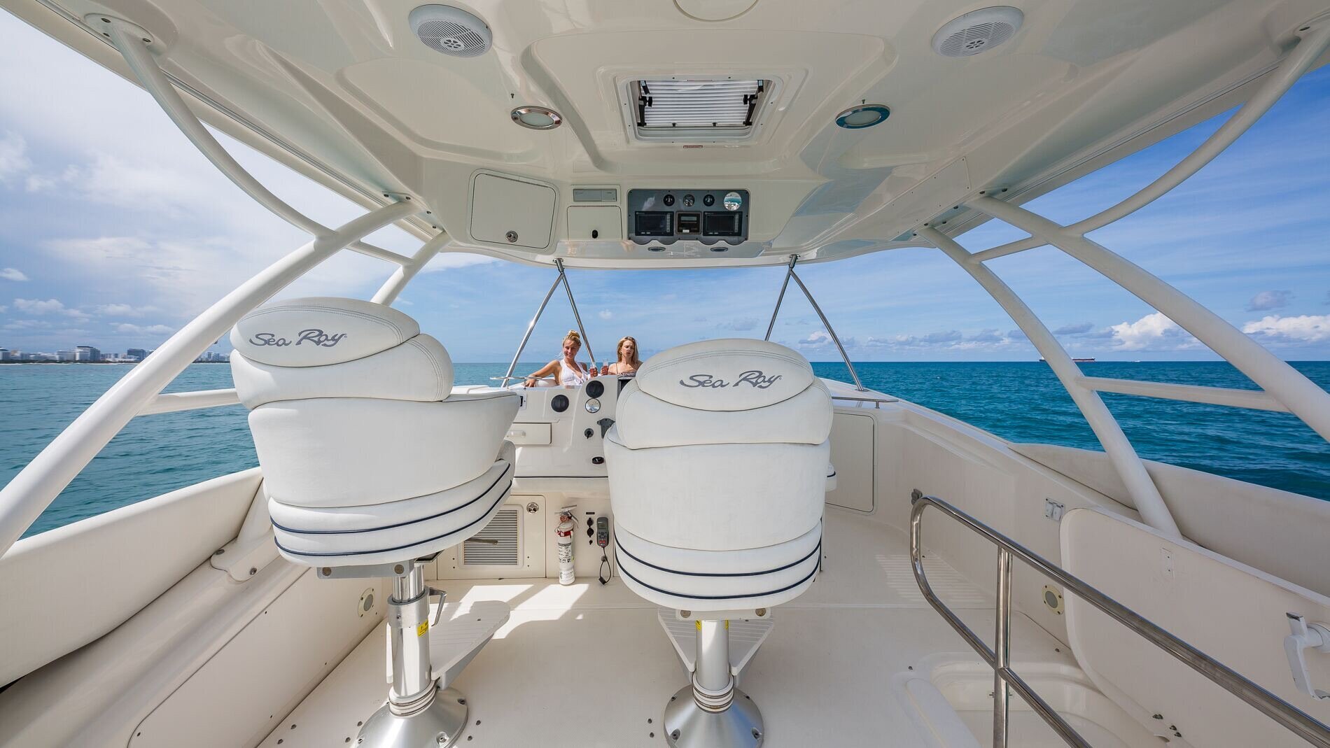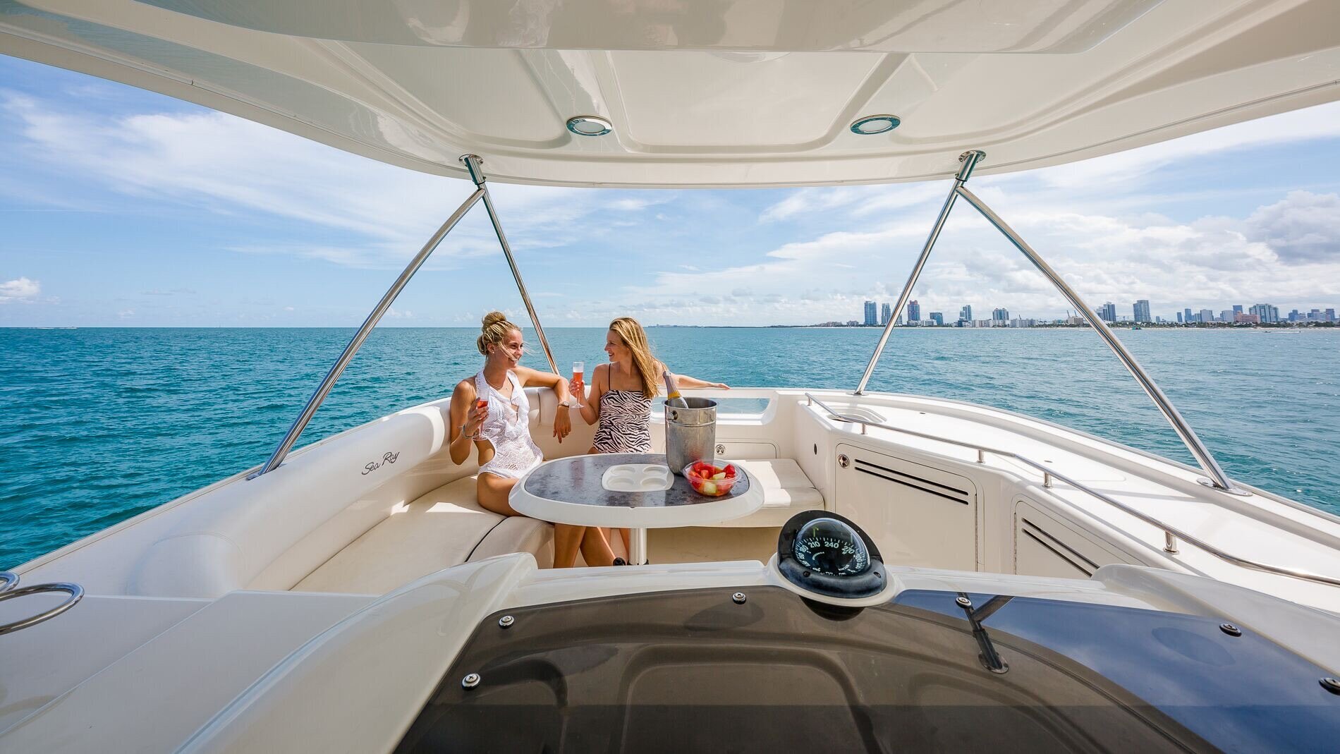 Rent this stylish 58 Sea Ray sedan bridge yacht in Miami.