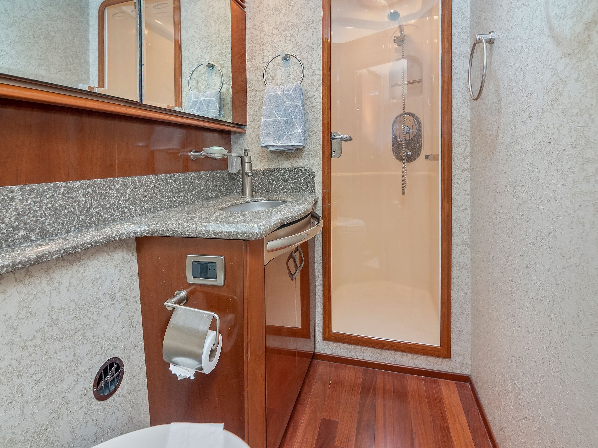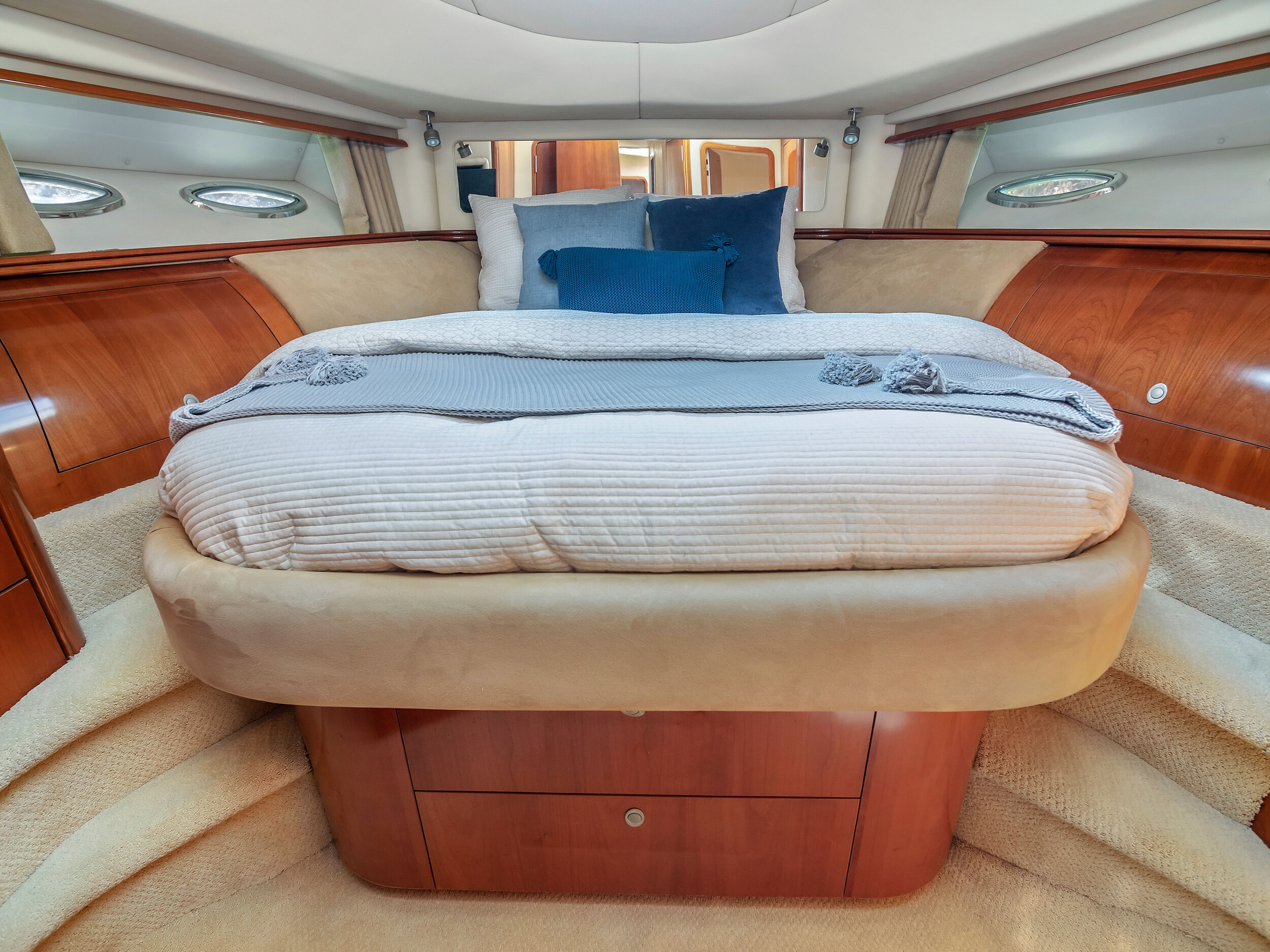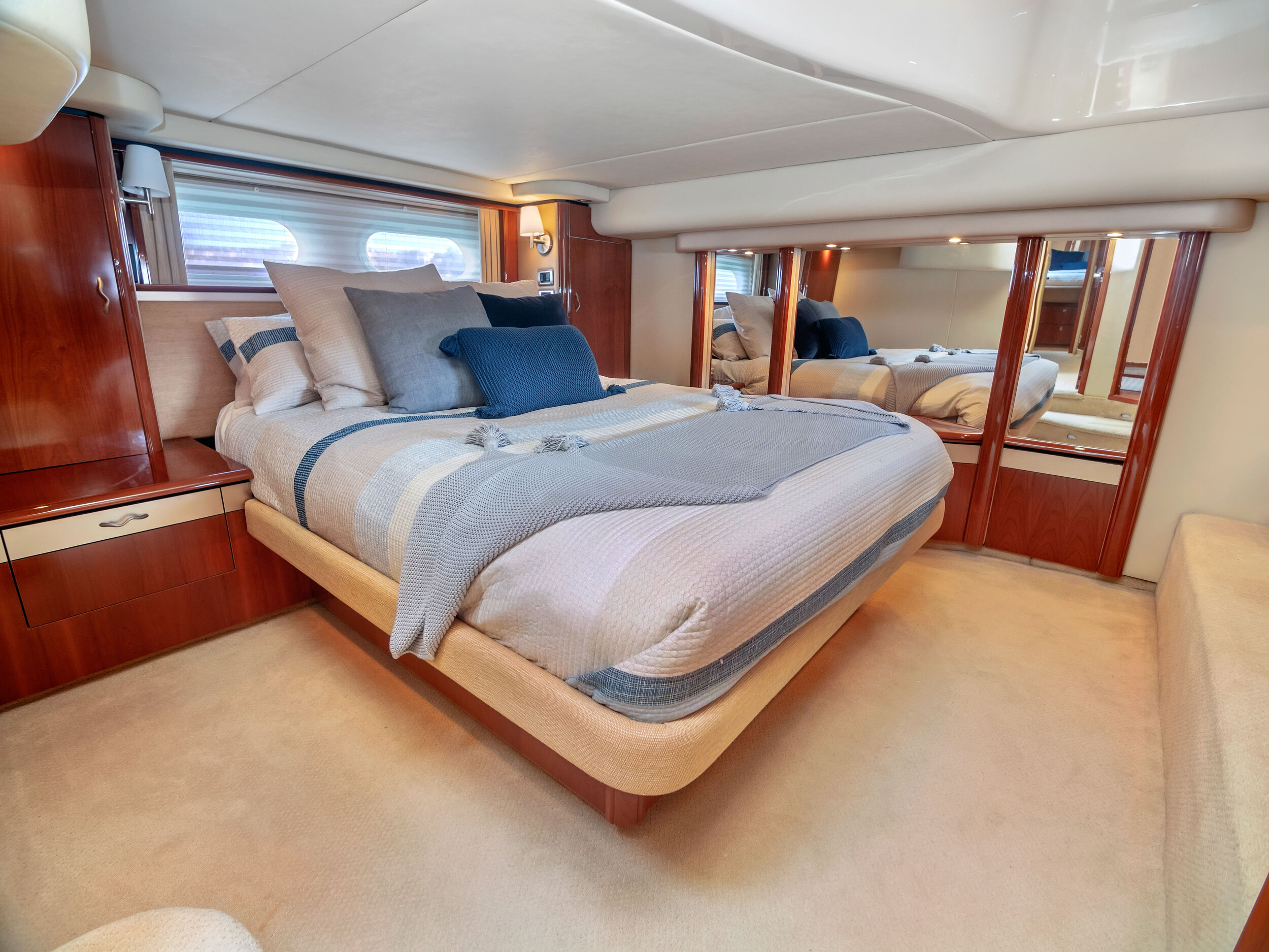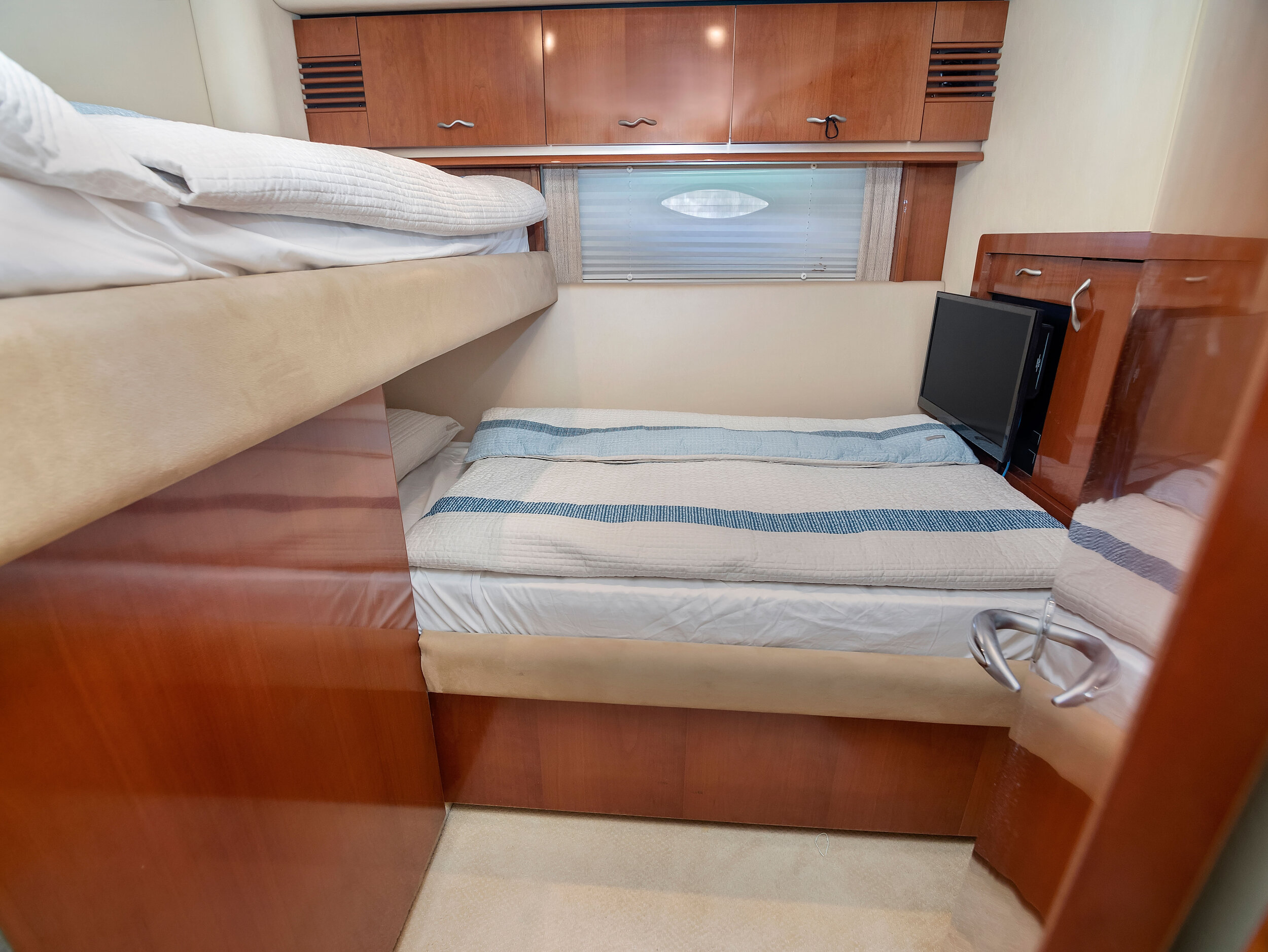 The 58’ Sea Ray Flybridge Motor Yacht is packed with luxury accommodation's that will make your time spent aboard a very memorable experience! enjoy the sights of Miami on its second level flybridge and sip your favorite beverage while cruising the tropical waters of south florida. If it get's too hot, enjoy the views from the air conditioned salon featuring large windows with 360 degrees views while lounging on the interior. The lower aft deck is great for dancing and toasting to the good life in Miami aboard this beautiful yacht. This yacht boasts a powerful sound system and a large floating foam island to lounge on while at anchor.