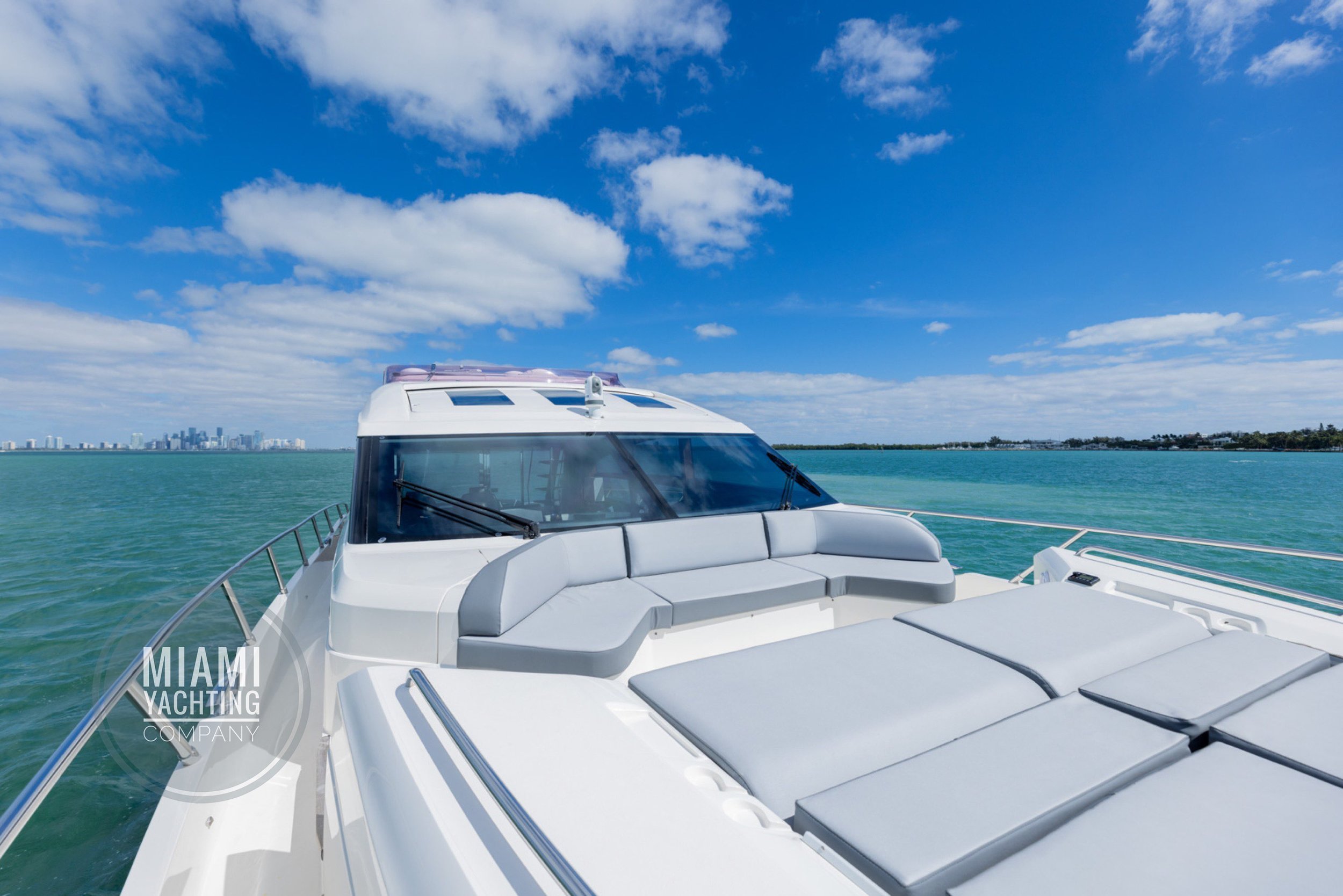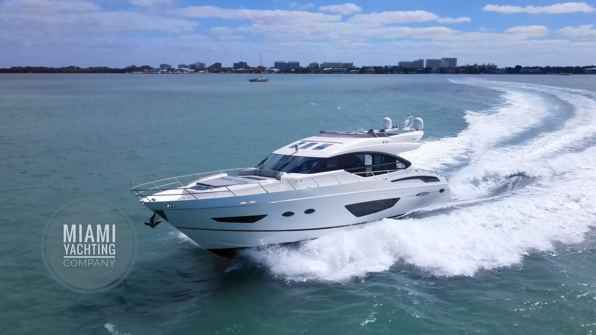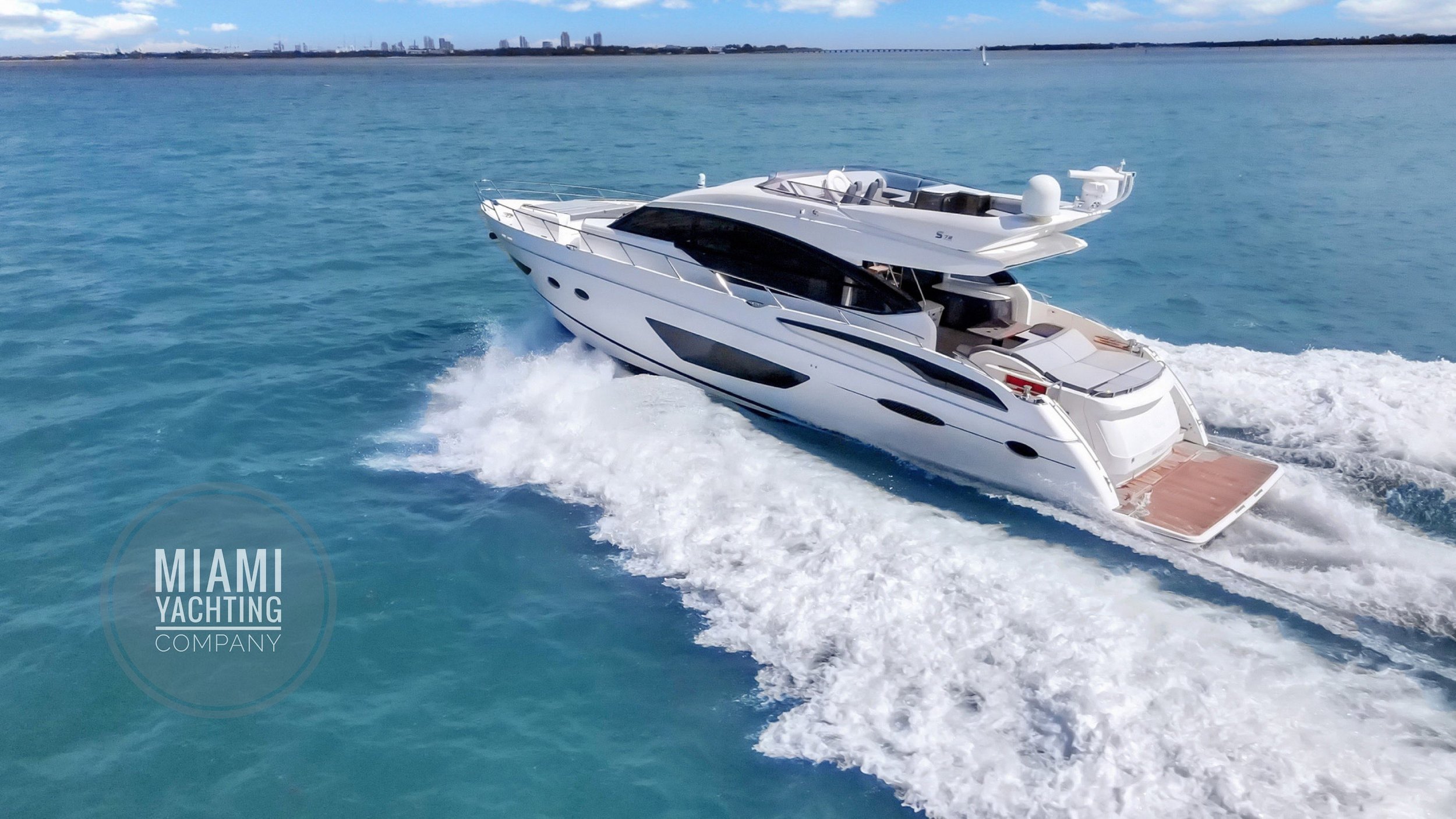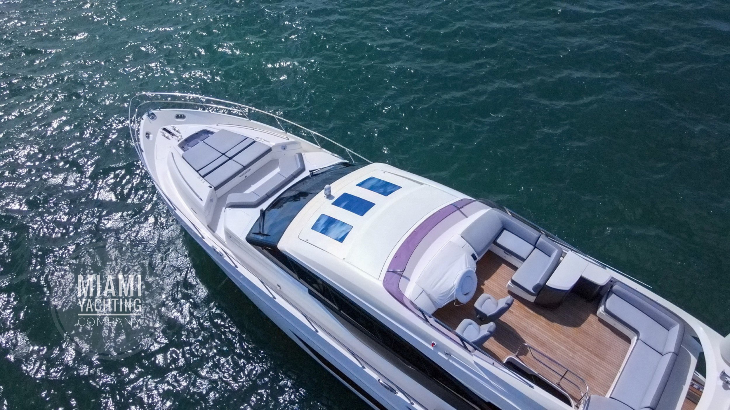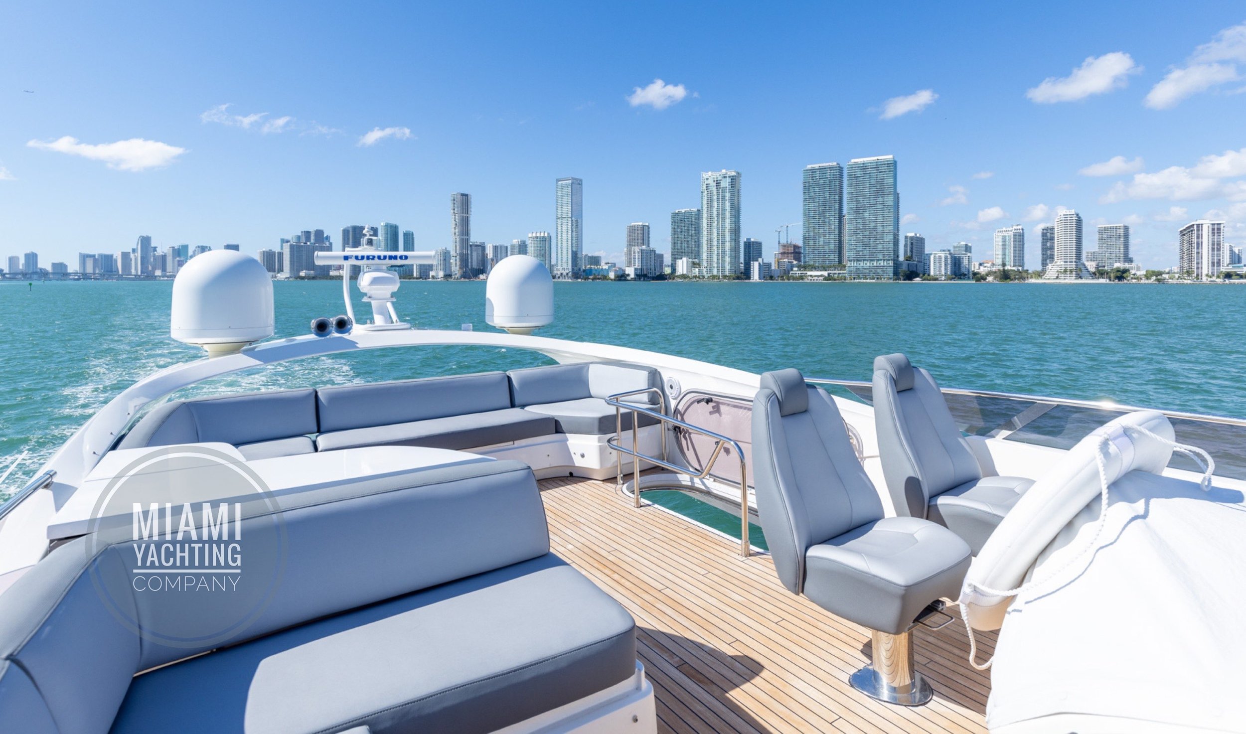 Recognized for their excellence in the yachting industry worldwide, Princess yachts provide an unparalleled combination of comfort, quality and flexibility. With 74 ft of length overall, this gorgeous s72 Princess Miami yacht rental has no shortage of perfect places to entertain, or to sit back, relax, and enjoy the yacht’s exhilarating performance. The cockpit bar connects to the galley to create an almost seamless transition from outside to in, with a glass window partition which folds up from the unit below to provide serving access when entertaining. The salon is designed for sociable living, with a large L-shaped dining area opposite the fully equipped galley, leading to a cavernous main deck saloon with U-shaped sofa. Below deck, eight guests can enjoy four beautifully appointed cabins, three of which are en-suite, all bathed in natural light from elegant hull glazing, with a further twin cabin with en-suite aft for occasional guests or crew. A dedicated staircase leads from the main deck to the full-beam owner’s stateroom amidships, via a private lobby area in the lower. Reserve this gorgeous yacht for rent in Miami with family or friends. She is perfect for exploring South Beach, Key Biscayne and the surrounding waterways of South Florida on your next miami boat rental adventure.