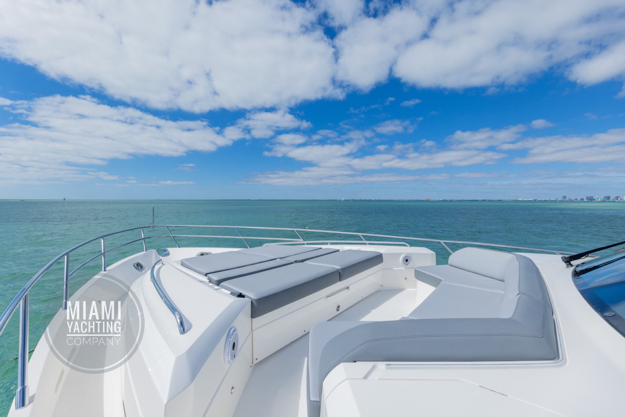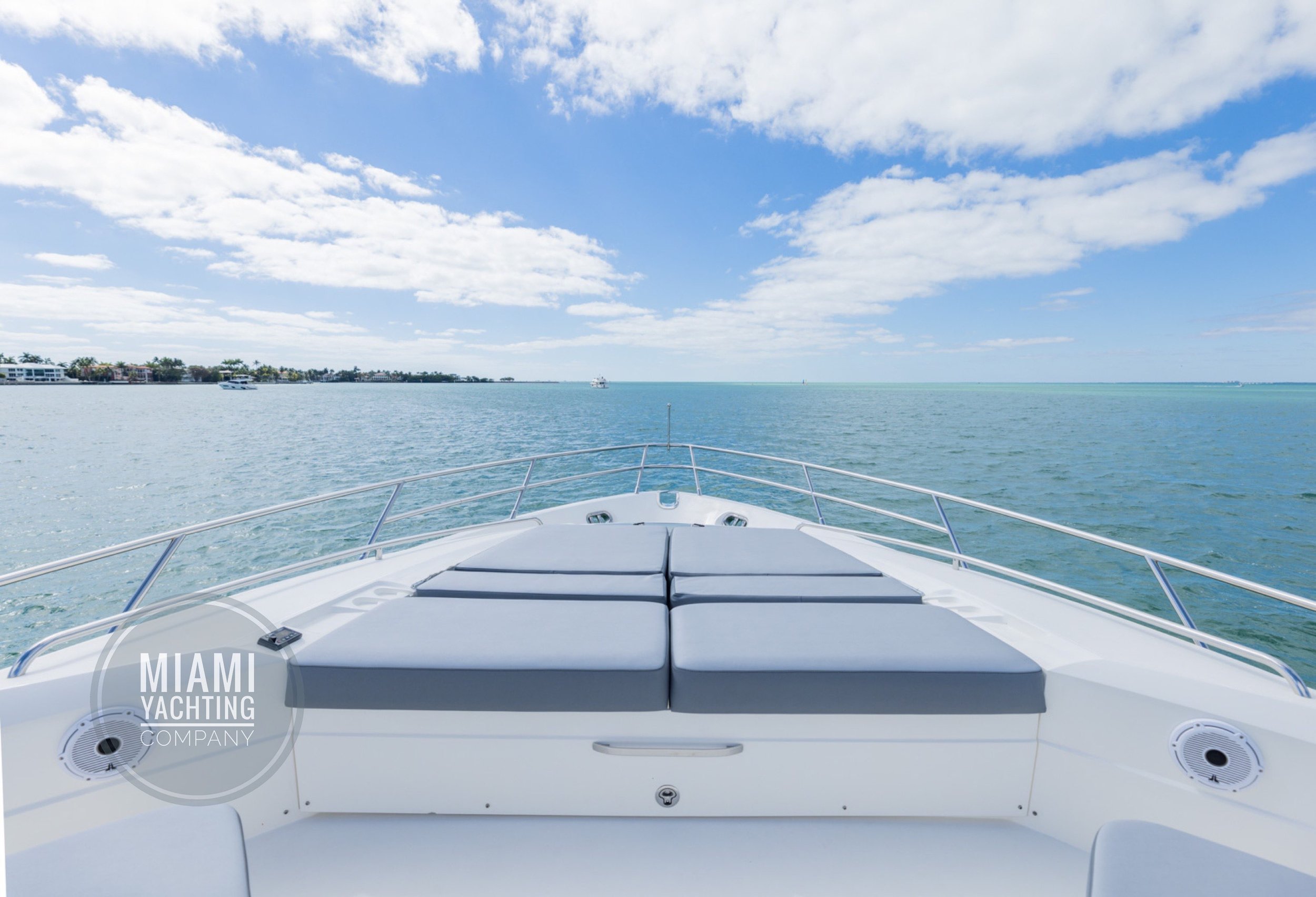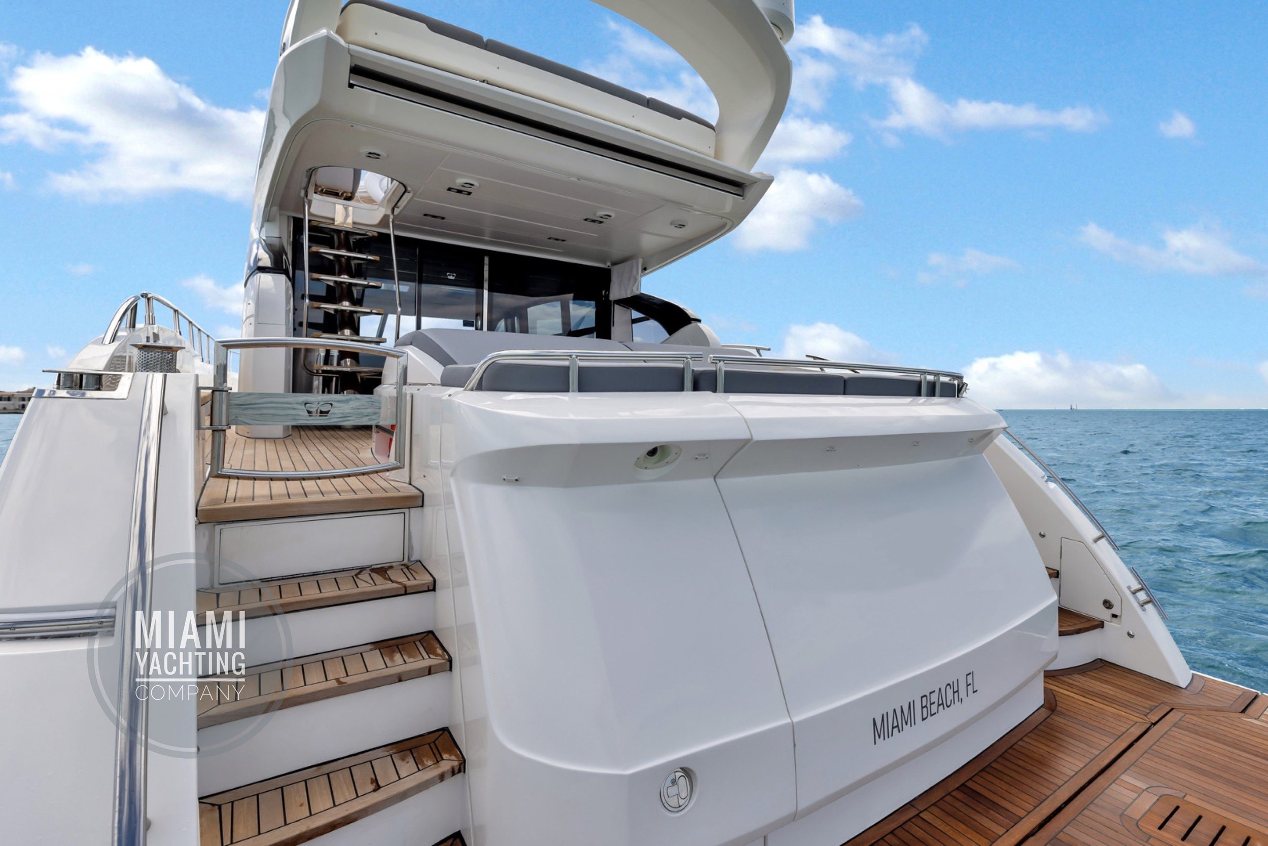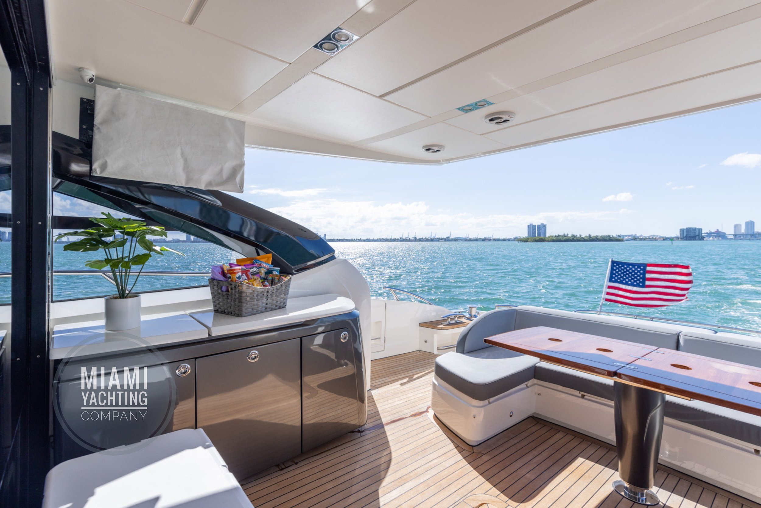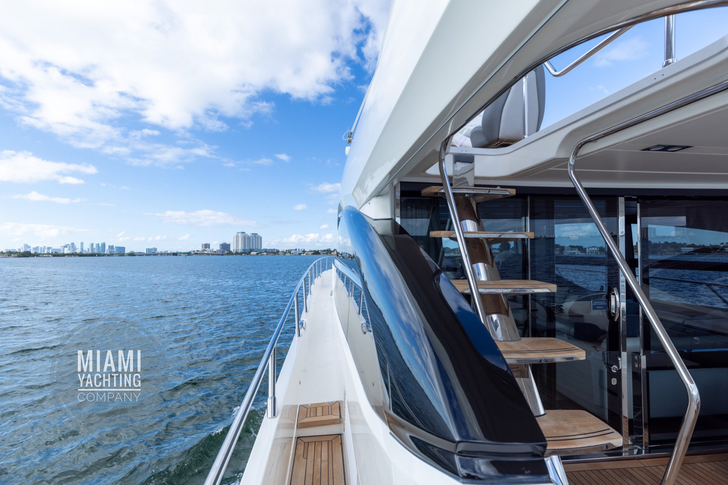 Recognized for their excellence in the yachting industry worldwide, Princess yachts provide an unparalleled combination of comfort, quality and flexibility. With 74 ft of length overall, this gorgeous s72 Princess Miami yacht rental has no shortage of perfect places to entertain, or to sit back, relax, and enjoy the yacht’s exhilarating performance. The cockpit bar connects to the galley to create an almost seamless transition from outside to in, with a glass window partition which folds up from the unit below to provide serving access when entertaining. The salon is designed for sociable living, with a large L-shaped dining area opposite the fully equipped galley, leading to a cavernous main deck saloon with U-shaped sofa. Below deck, eight guests can enjoy four beautifully appointed cabins, three of which are en-suite, all bathed in natural light from elegant hull glazing, with a further twin cabin with en-suite aft for occasional guests or crew. A dedicated staircase leads from the main deck to the full-beam owner’s stateroom amidships, via a private lobby area in the lower. Reserve this gorgeous yacht for rent in Miami with family or friends. She is perfect for exploring South Beach, Key Biscayne and the surrounding waterways of South Florida on your next miami boat rental adventure.