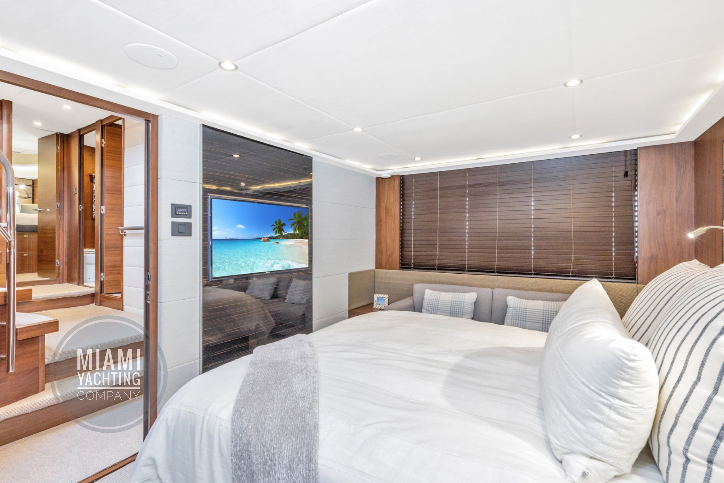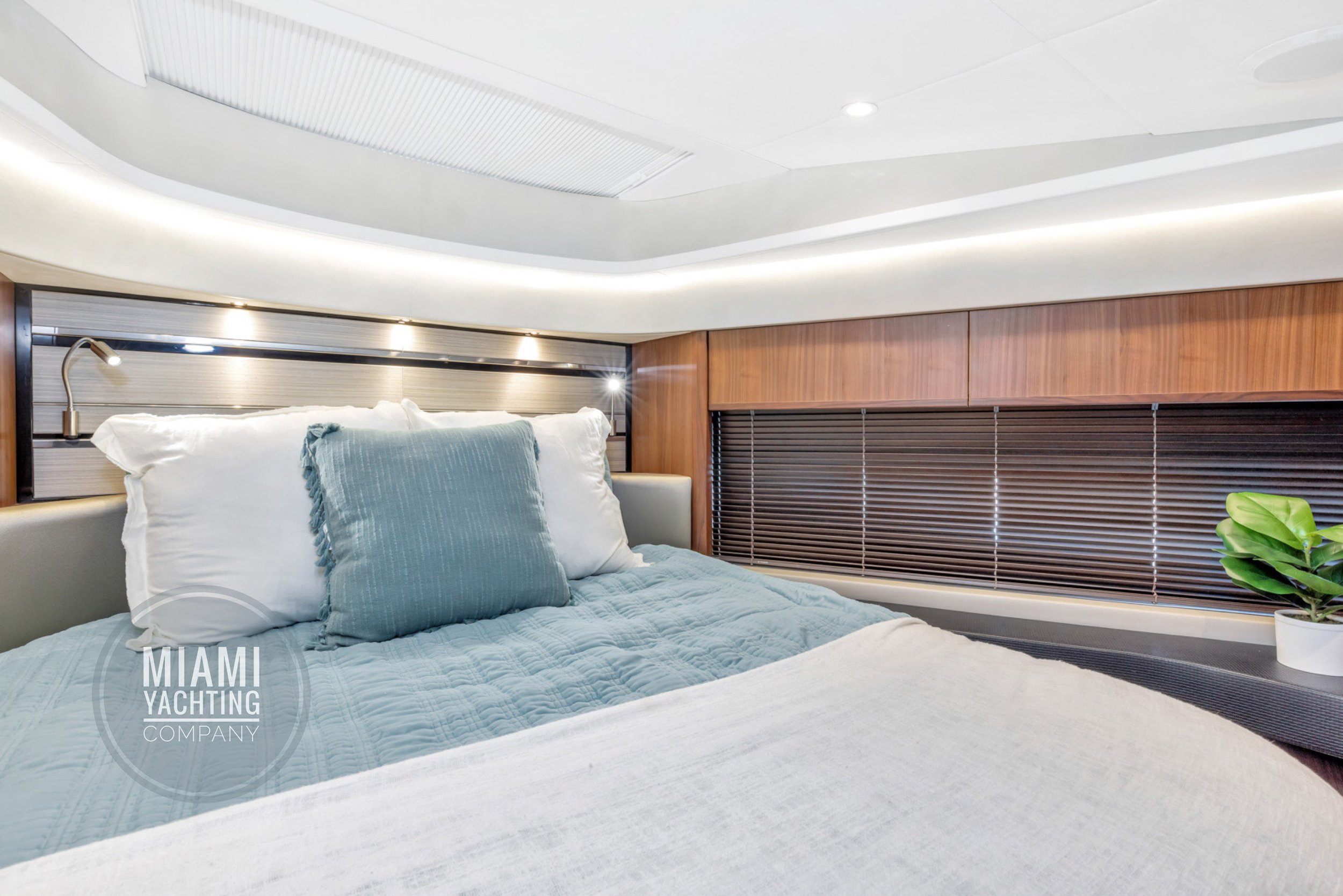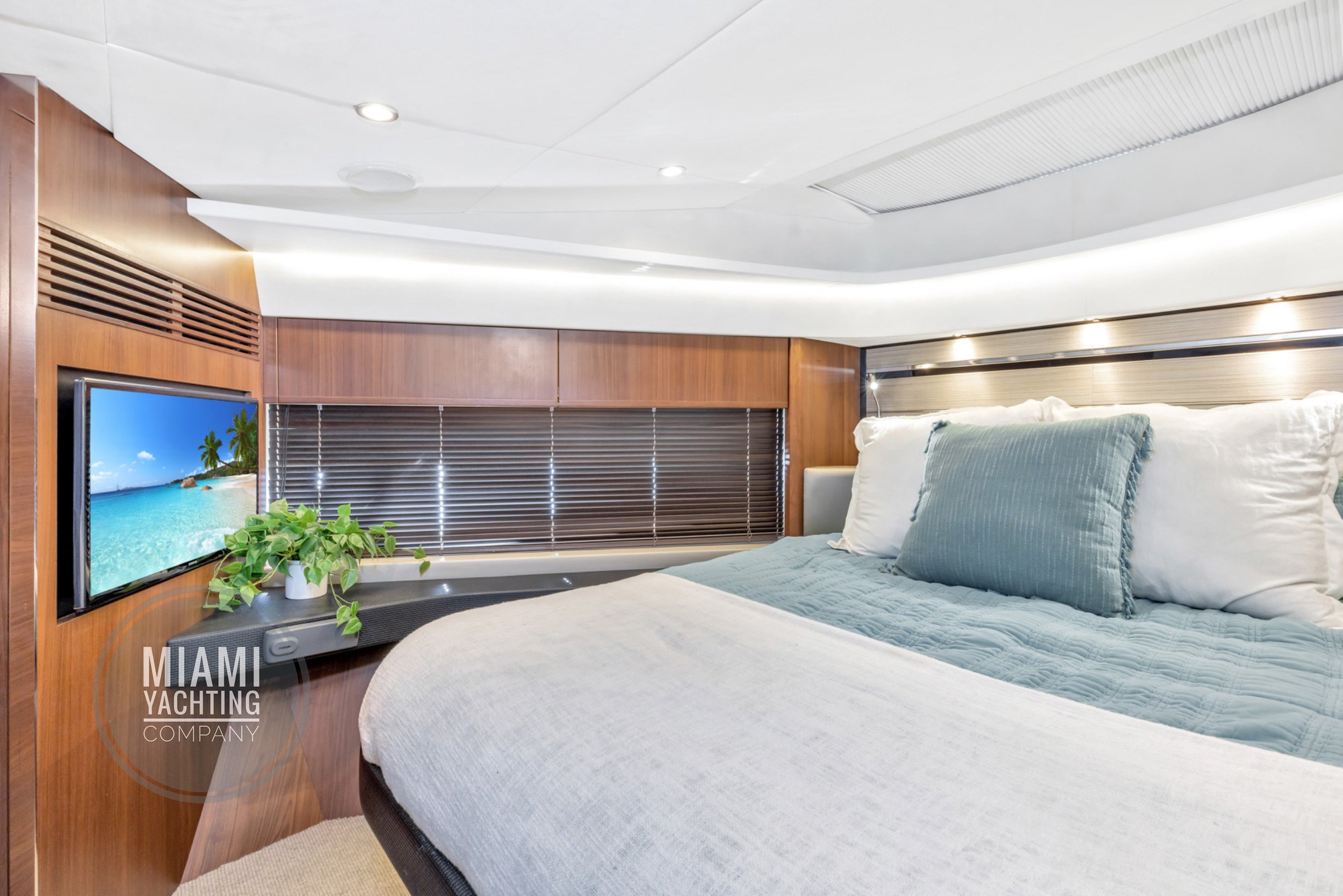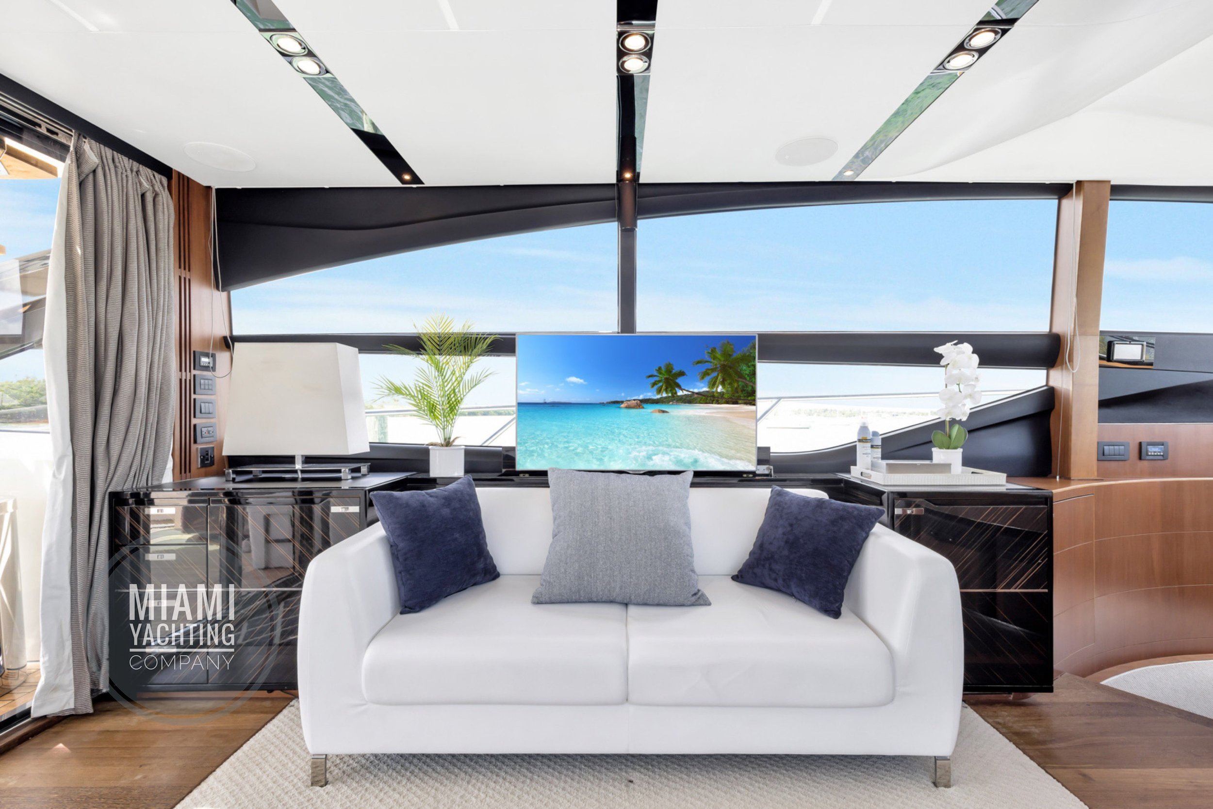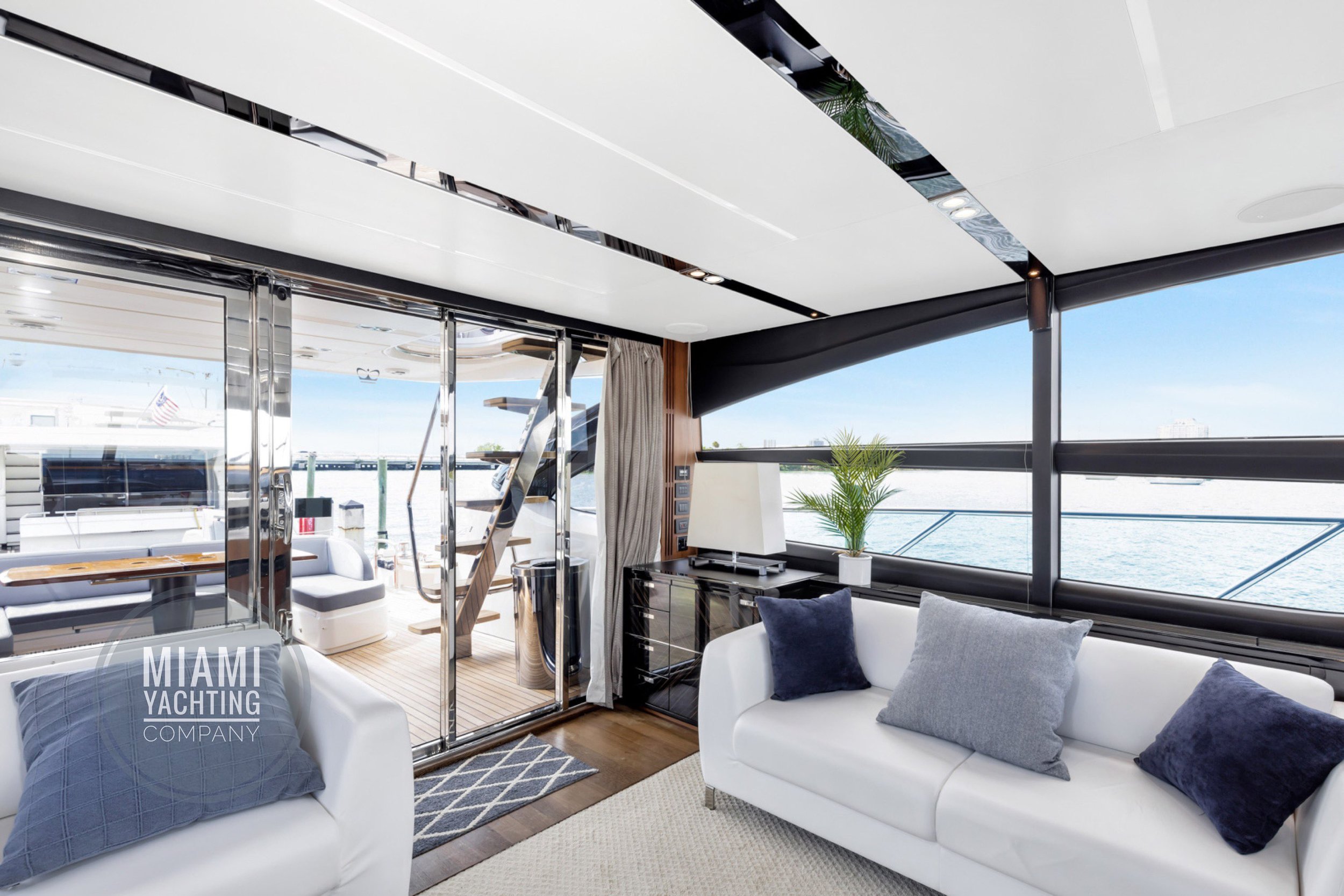 Recognized for their excellence in the yachting industry worldwide, Princess yachts provide an unparalleled combination of comfort, quality and flexibility. With 74 ft of length overall, this gorgeous s72 Princess Miami yacht rental has no shortage of perfect places to entertain, or to sit back, relax, and enjoy the yacht’s exhilarating performance. The cockpit bar connects to the galley to create an almost seamless transition from outside to in, with a glass window partition which folds up from the unit below to provide serving access when entertaining. The salon is designed for sociable living, with a large L-shaped dining area opposite the fully equipped galley, leading to a cavernous main deck saloon with U-shaped sofa. Below deck, eight guests can enjoy four beautifully appointed cabins, three of which are en-suite, all bathed in natural light from elegant hull glazing, with a further twin cabin with en-suite aft for occasional guests or crew. A dedicated staircase leads from the main deck to the full-beam owner’s stateroom amidships, via a private lobby area in the lower. Reserve this gorgeous yacht for rent in Miami with family or friends. She is perfect for exploring South Beach, Key Biscayne and the surrounding waterways of South Florida on your next miami boat rental adventure.