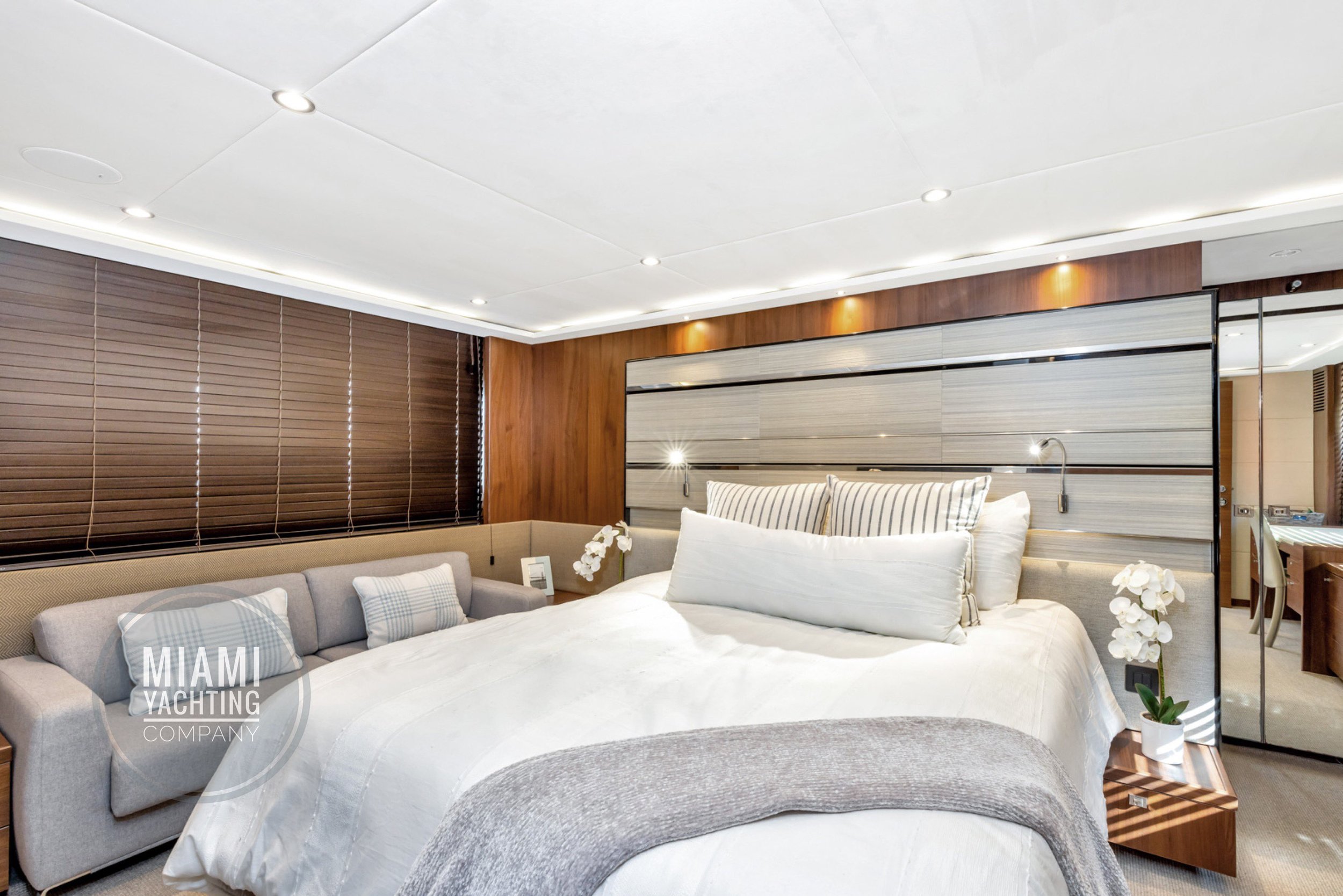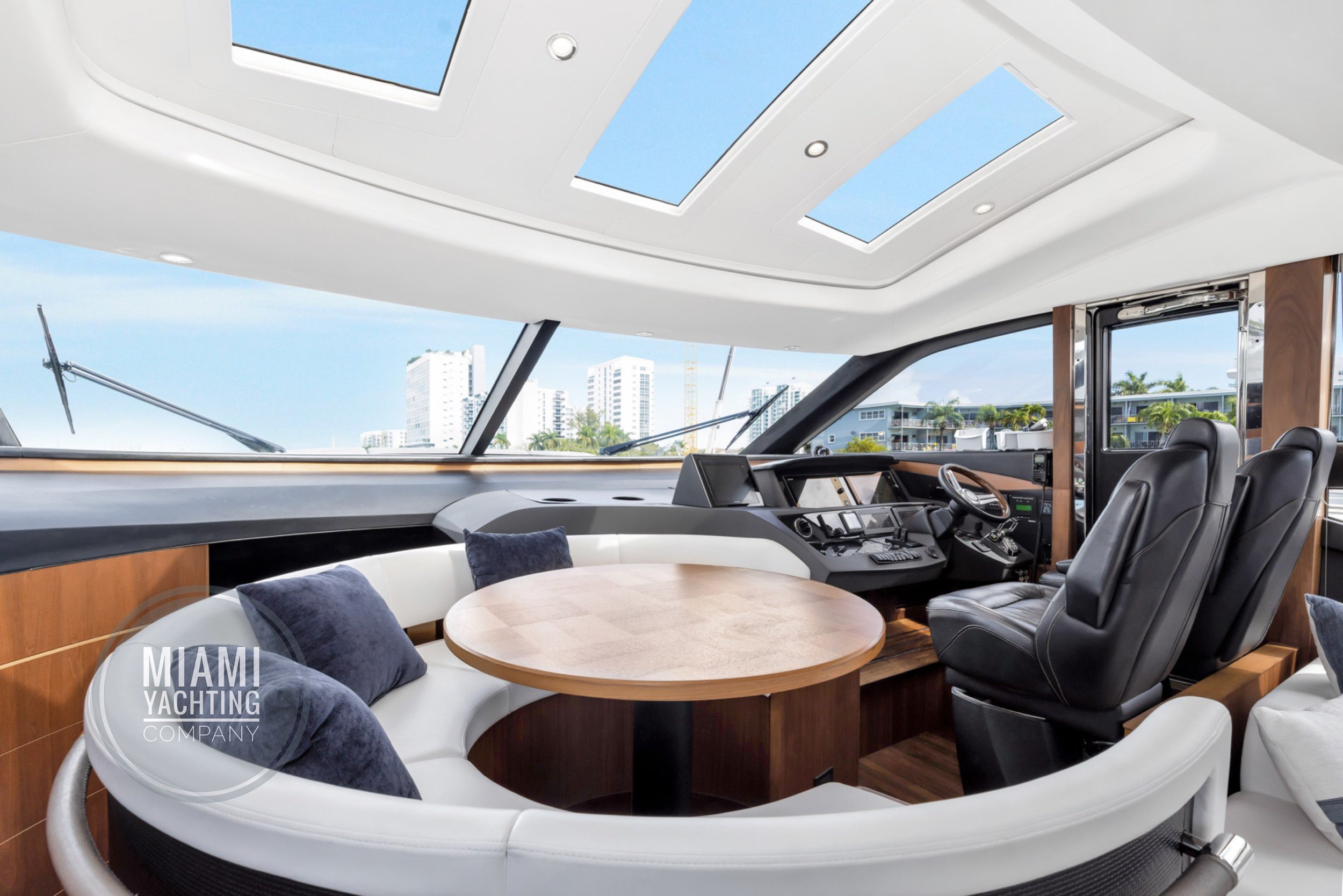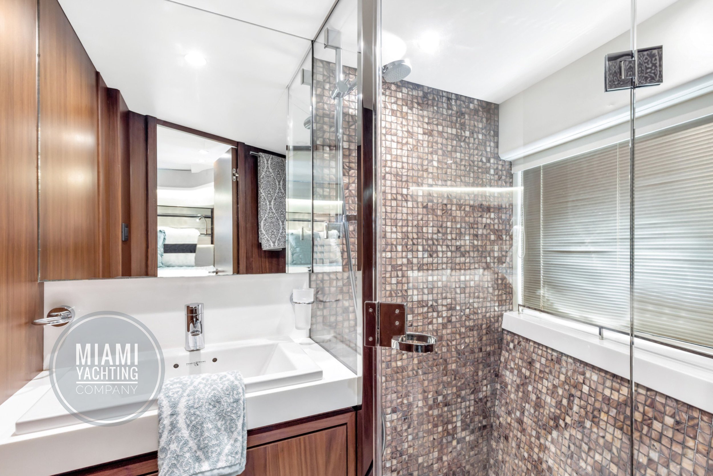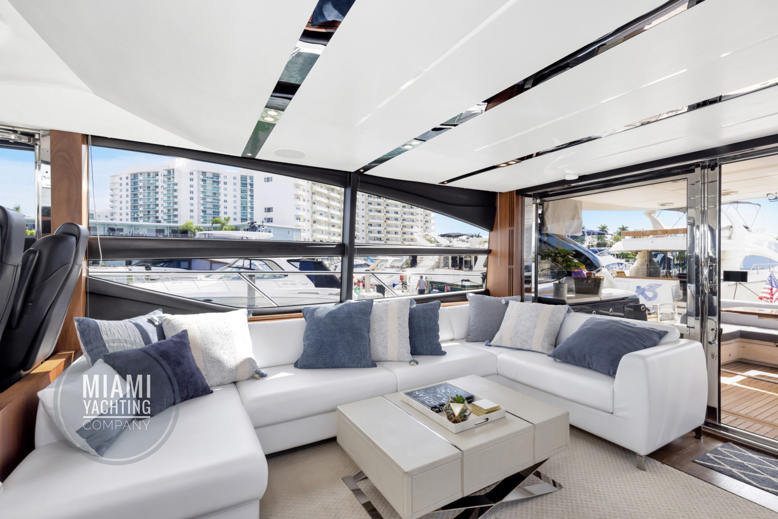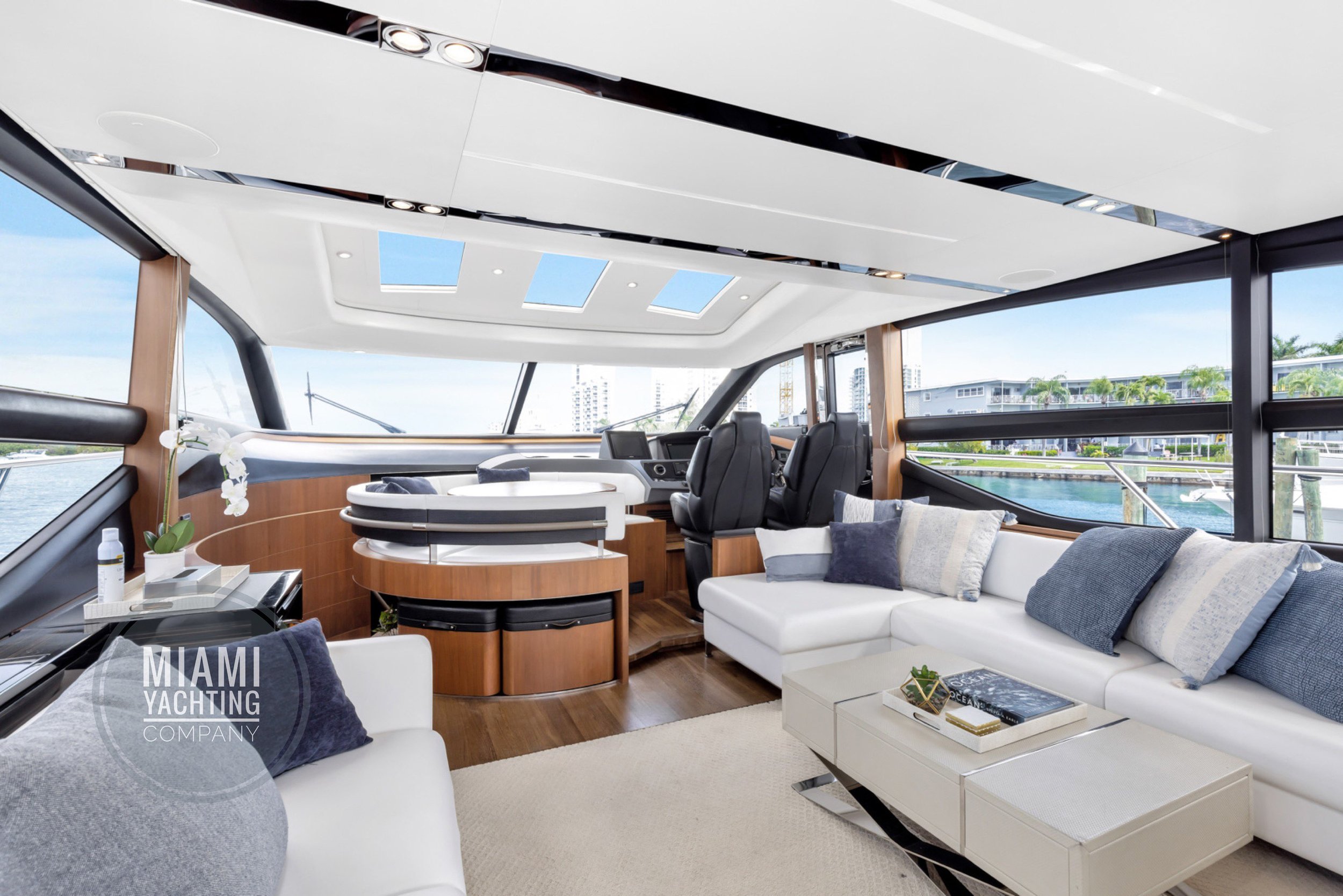 Recognized for their excellence in the yachting industry worldwide, Princess yachts provide an unparalleled combination of comfort, quality and flexibility. With 74 ft of length overall, this gorgeous s72 Princess Miami yacht rental has no shortage of perfect places to entertain, or to sit back, relax, and enjoy the yacht’s exhilarating performance. The cockpit bar connects to the galley to create an almost seamless transition from outside to in, with a glass window partition which folds up from the unit below to provide serving access when entertaining. The salon is designed for sociable living, with a large L-shaped dining area opposite the fully equipped galley, leading to a cavernous main deck saloon with U-shaped sofa. Below deck, eight guests can enjoy four beautifully appointed cabins, three of which are en-suite, all bathed in natural light from elegant hull glazing, with a further twin cabin with en-suite aft for occasional guests or crew. A dedicated staircase leads from the main deck to the full-beam owner’s stateroom amidships, via a private lobby area in the lower. Reserve this gorgeous yacht for rent in Miami with family or friends. She is perfect for exploring South Beach, Key Biscayne and the surrounding waterways of South Florida on your next miami boat rental adventure.