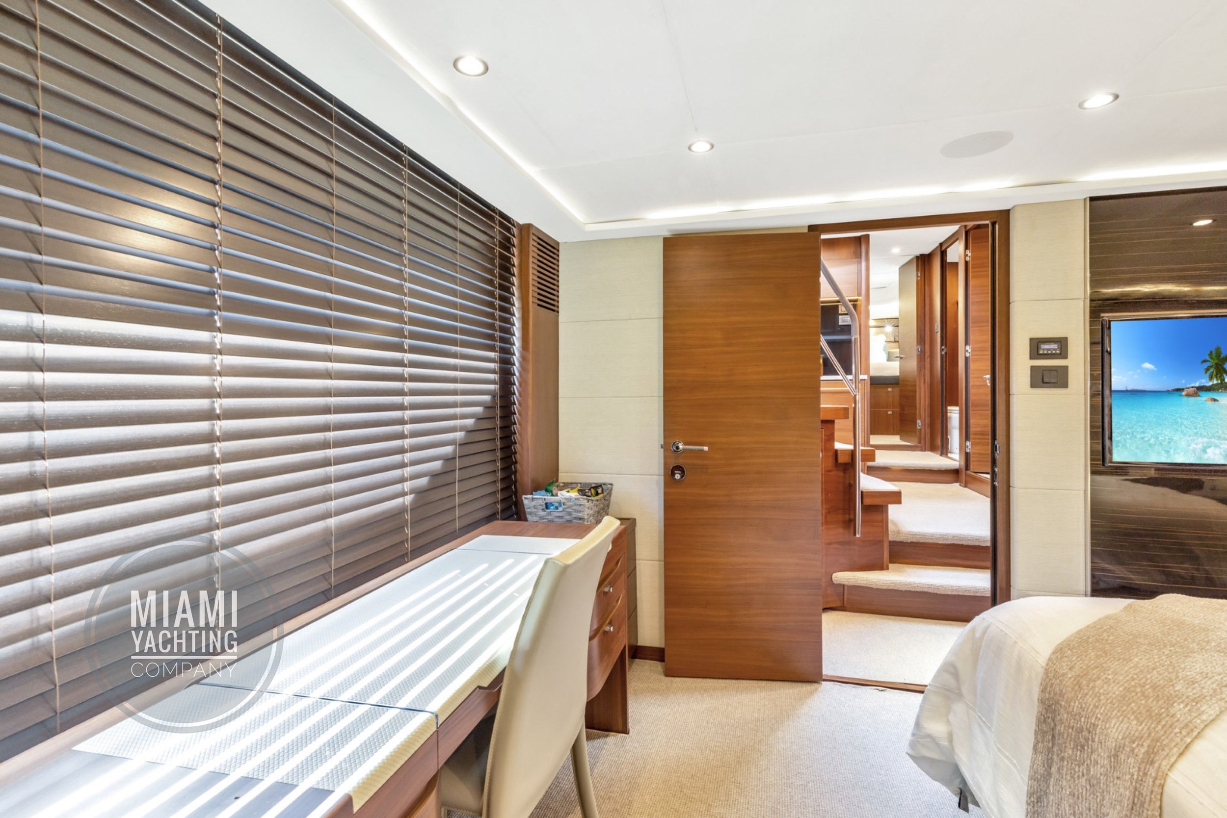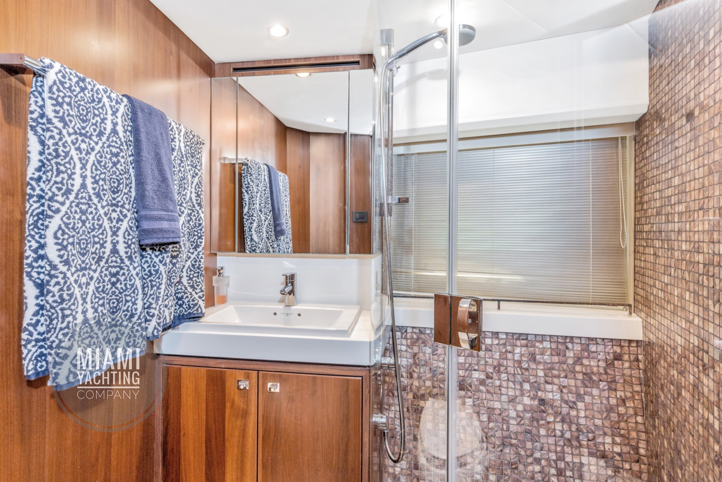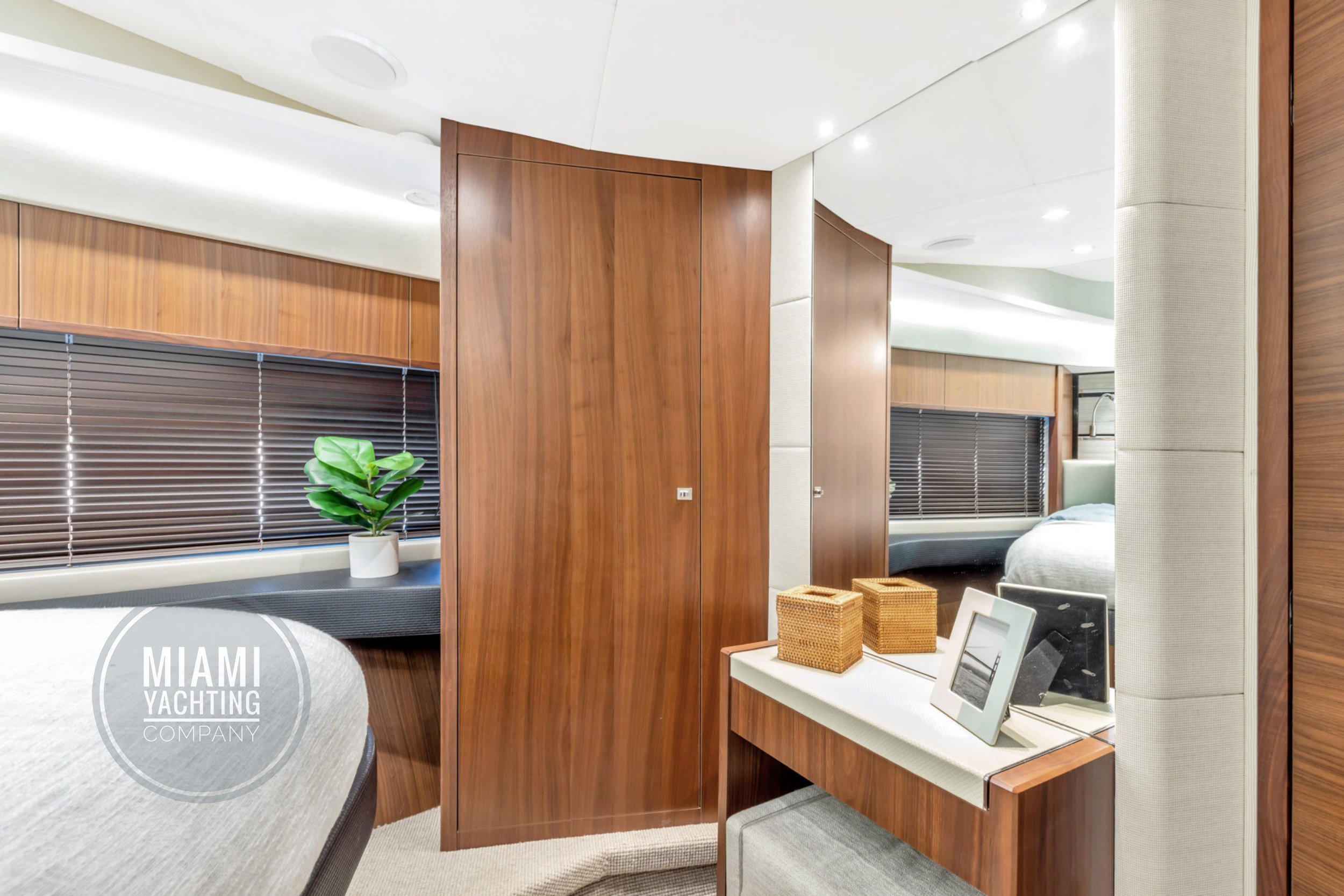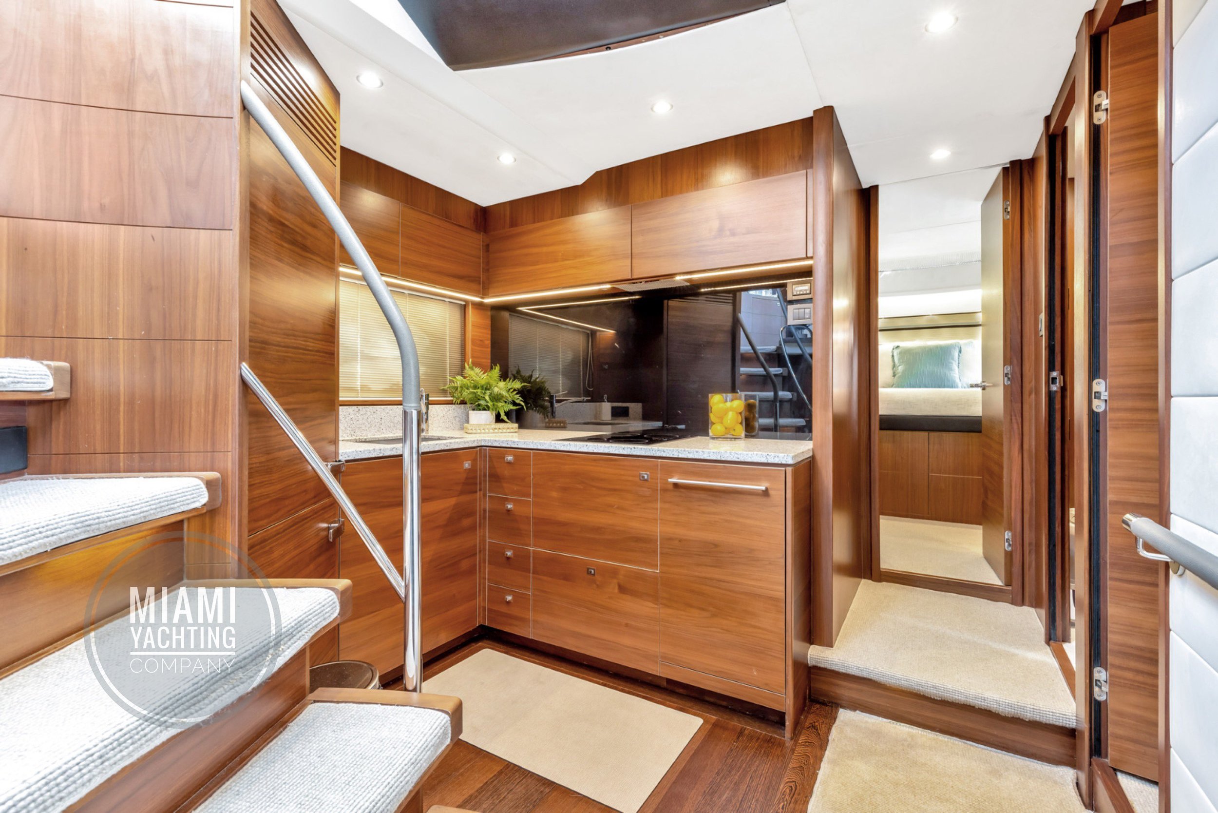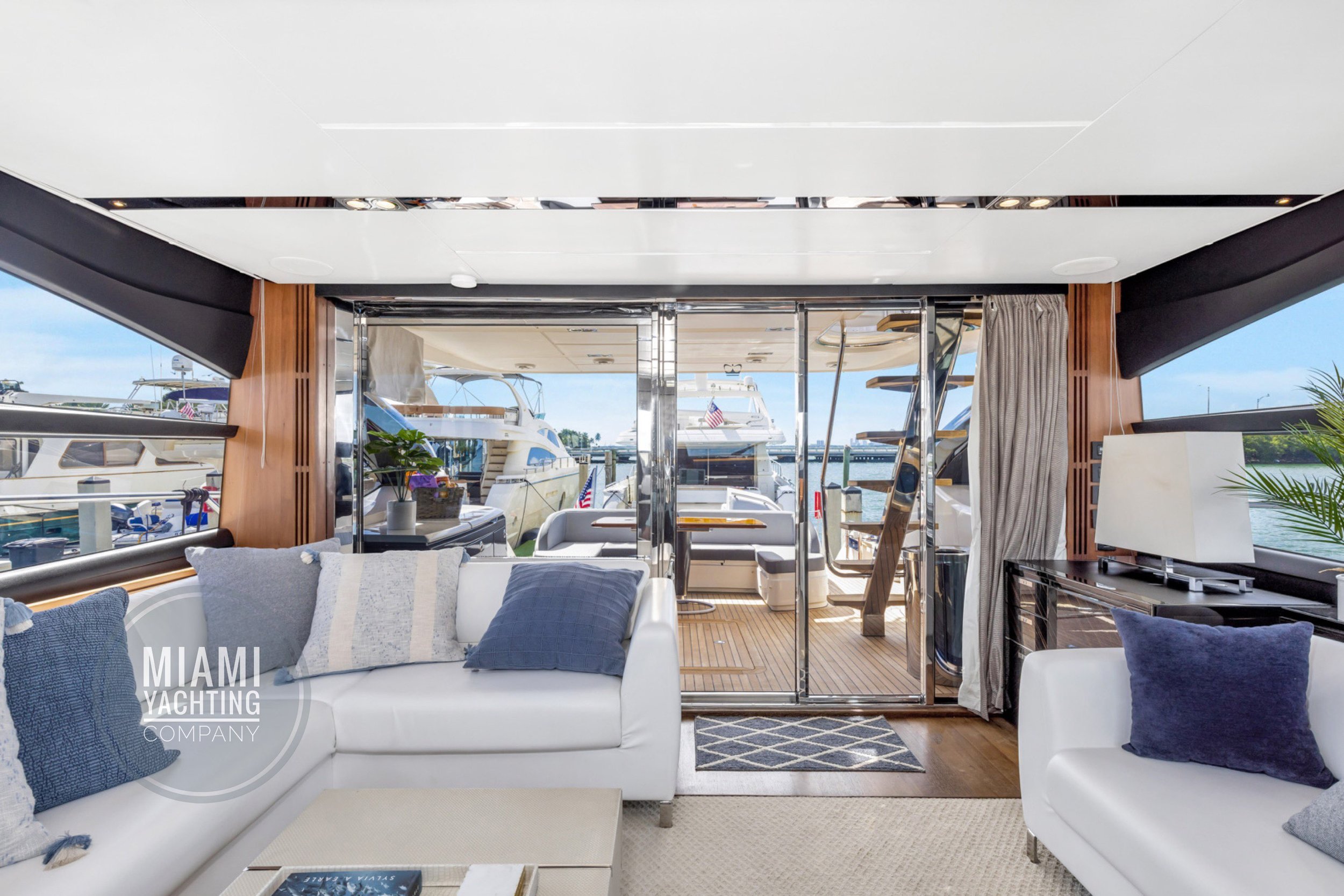 Recognized for their excellence in the yachting industry worldwide, Princess yachts provide an unparalleled combination of comfort, quality and flexibility. With 74 ft of length overall, this gorgeous s72 Princess Miami yacht rental has no shortage of perfect places to entertain, or to sit back, relax, and enjoy the yacht’s exhilarating performance. The cockpit bar connects to the galley to create an almost seamless transition from outside to in, with a glass window partition which folds up from the unit below to provide serving access when entertaining. The salon is designed for sociable living, with a large L-shaped dining area opposite the fully equipped galley, leading to a cavernous main deck saloon with U-shaped sofa. Below deck, eight guests can enjoy four beautifully appointed cabins, three of which are en-suite, all bathed in natural light from elegant hull glazing, with a further twin cabin with en-suite aft for occasional guests or crew. A dedicated staircase leads from the main deck to the full-beam owner’s stateroom amidships, via a private lobby area in the lower. Reserve this gorgeous yacht for rent in Miami with family or friends. She is perfect for exploring South Beach, Key Biscayne and the surrounding waterways of South Florida on your next miami boat rental adventure.