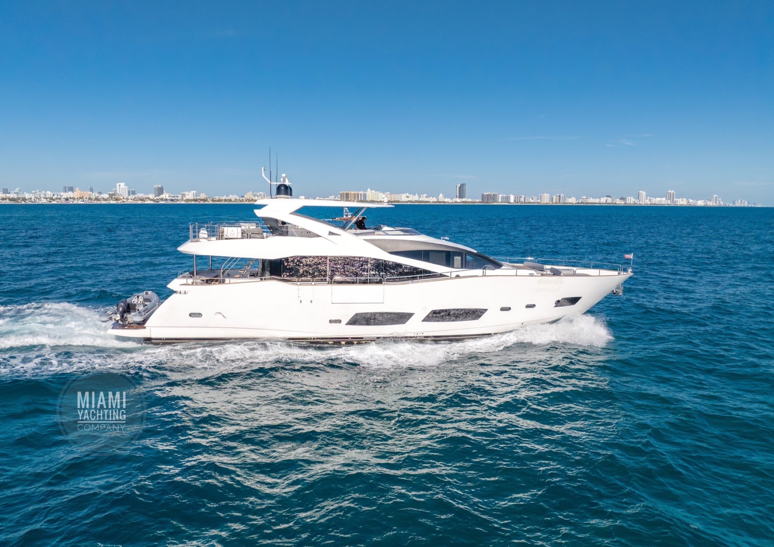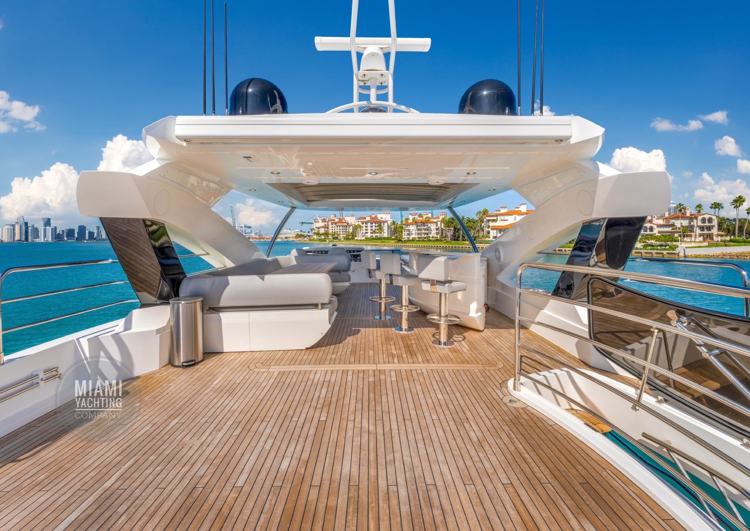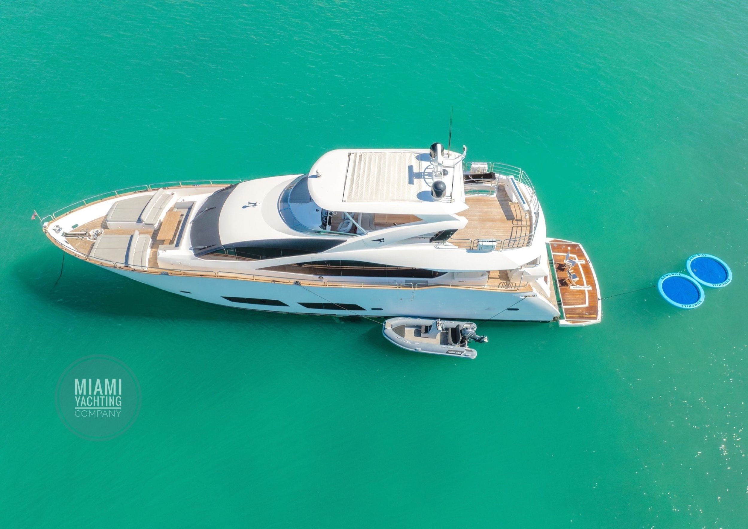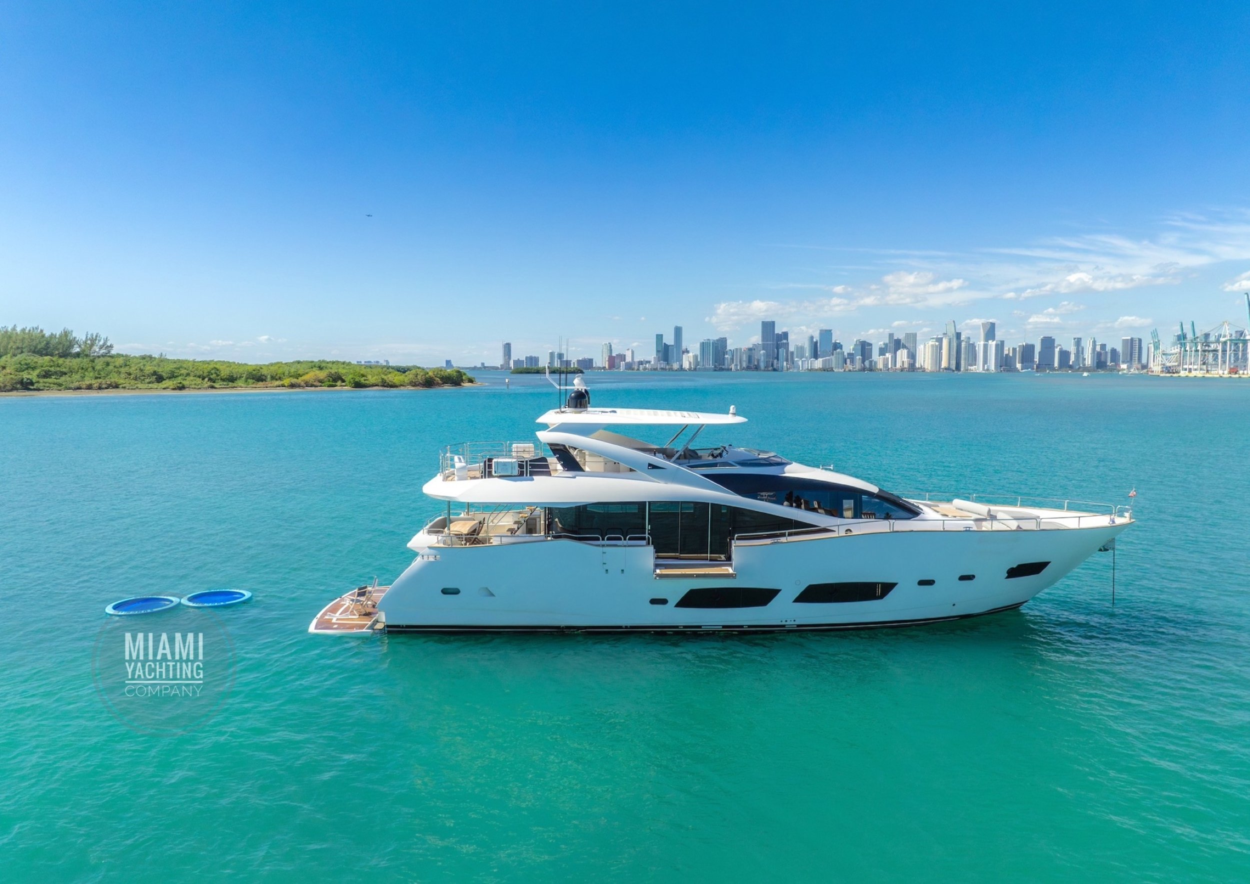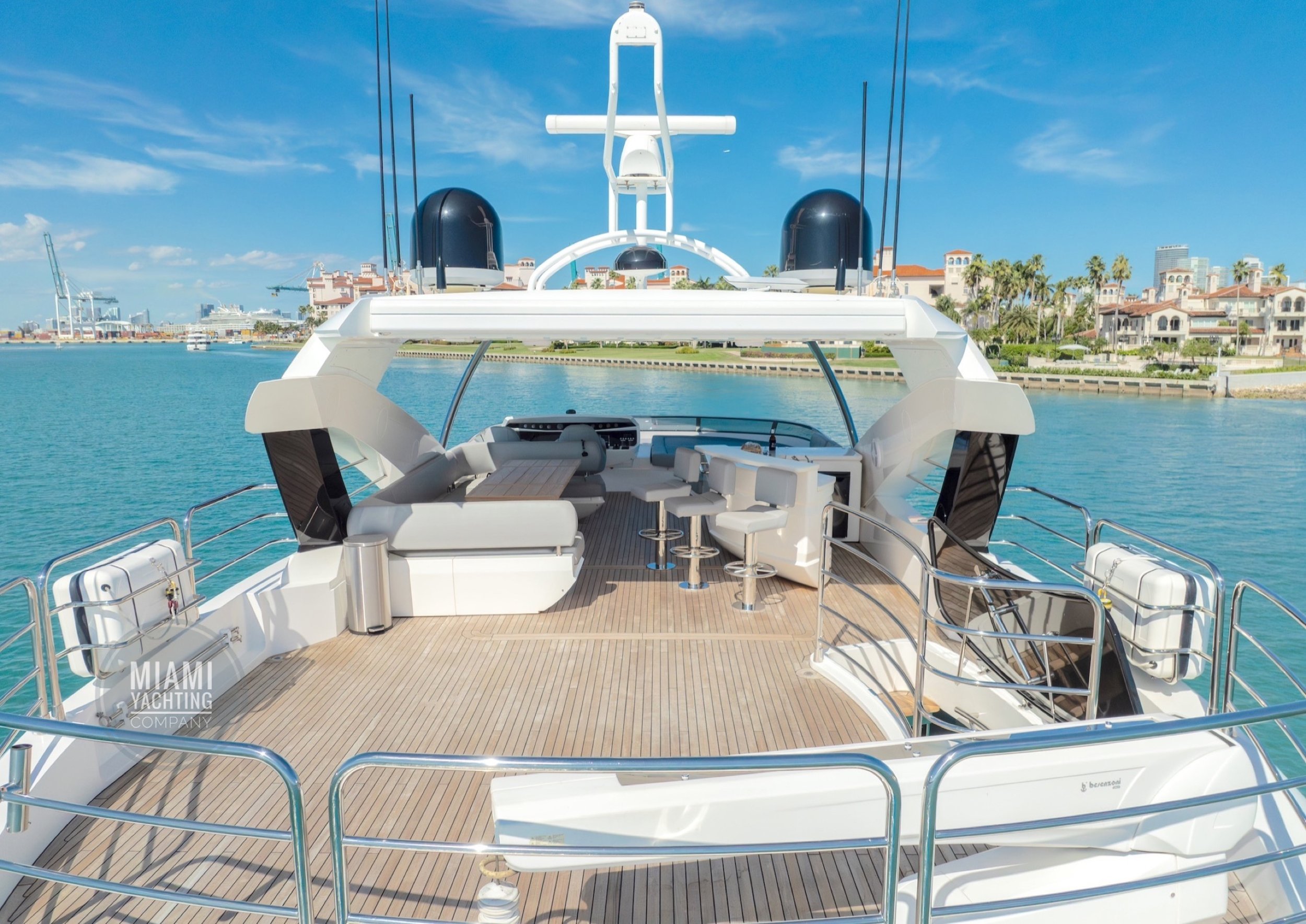 Set sail on a remarkable adventure aboard this 92 ft Sunseeker flybridge yacht, a premier choice for your next Miami yacht rental adventure. With its striking exterior design and powerful performance, this luxurious vessel delivers an unforgettable experience in the warm waters of Miami. Enjoy the expansive flybridge, complete with panoramic views and ample space for sunbathing and al fresco dining, making it the ideal platform to explore the vibrant Miami coastline and renowned South Florida hotspots. Whether you’re looking to entertain guests or simply relax in style, this yacht is engineered to elevate your experience every step of the way.