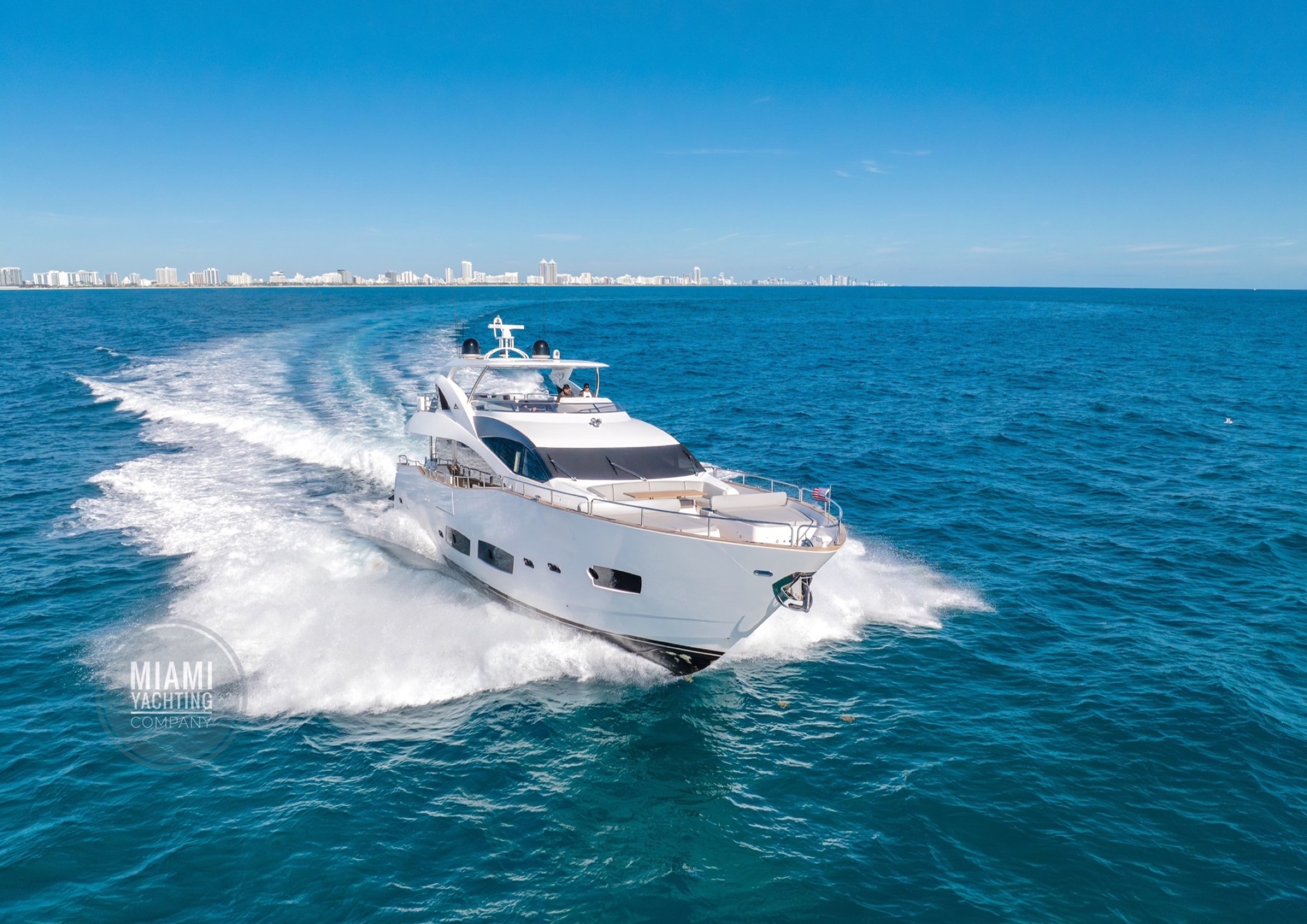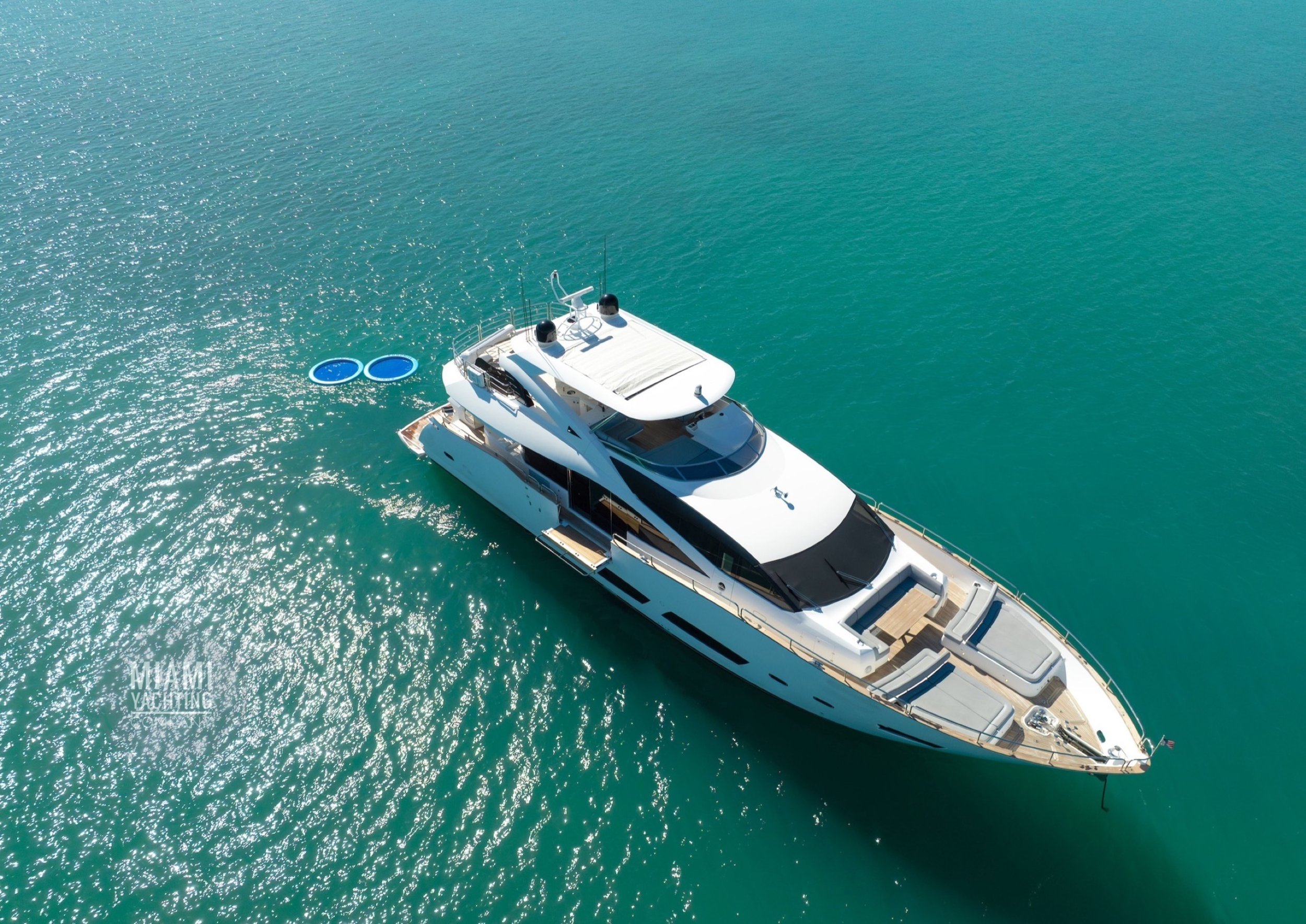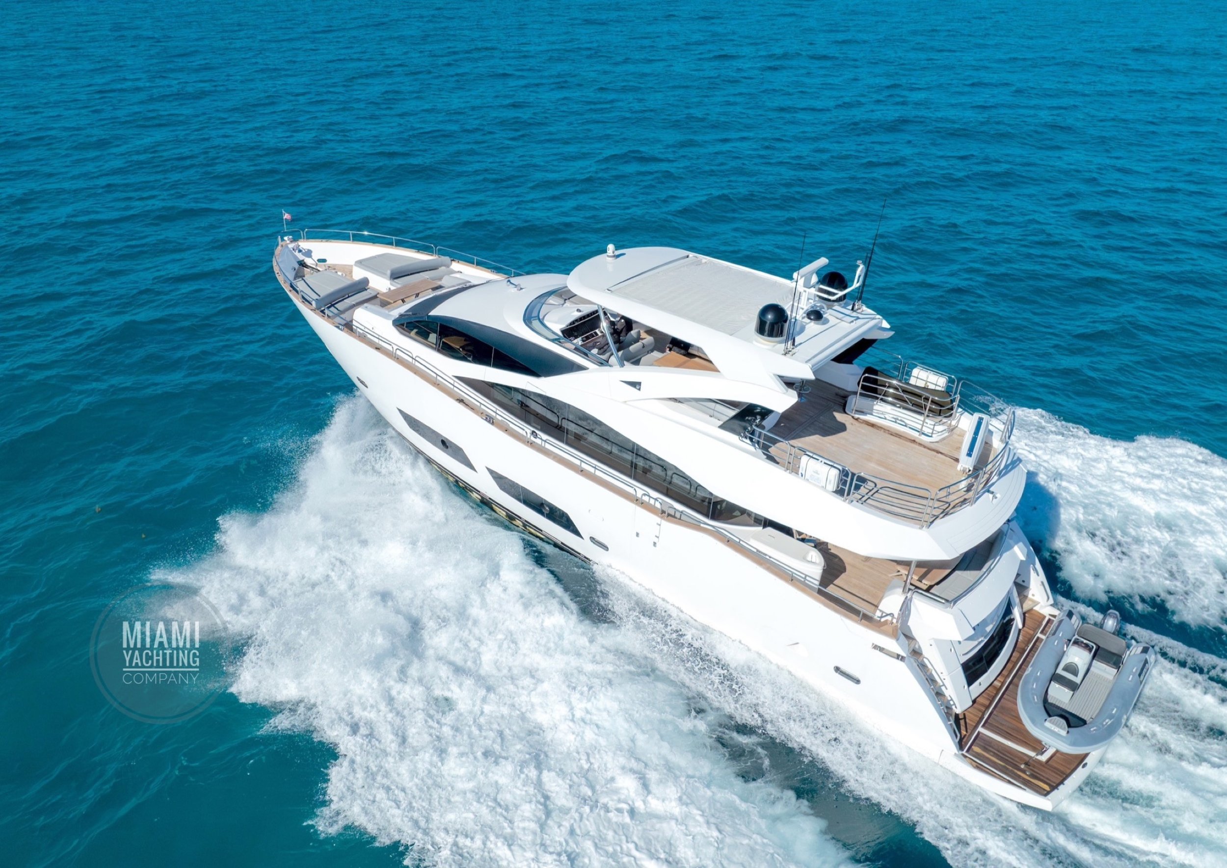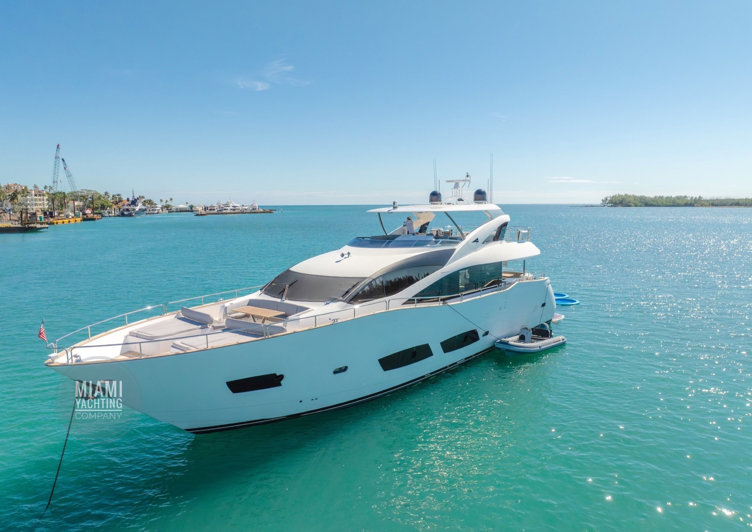 Set sail on a remarkable adventure aboard this 92 ft Sunseeker flybridge yacht, a premier choice for your next Miami yacht rental adventure. With its striking exterior design and powerful performance, this luxurious vessel delivers an unforgettable experience in the warm waters of Miami. Enjoy the expansive flybridge, complete with panoramic views and ample space for sunbathing and al fresco dining, making it the ideal platform to explore the vibrant Miami coastline and renowned South Florida hotspots. Whether you’re looking to entertain guests or simply relax in style, this yacht is engineered to elevate your experience every step of the way.