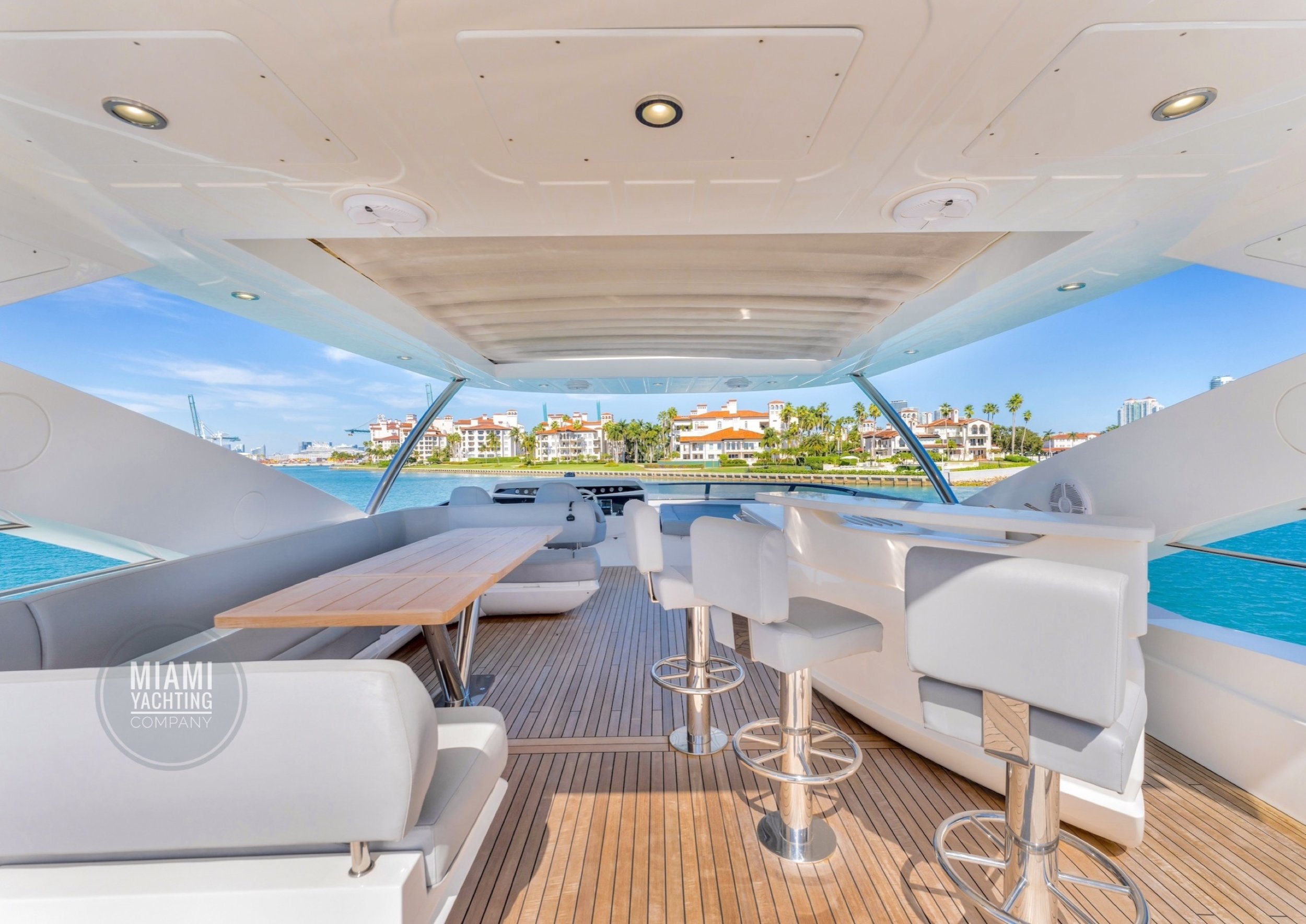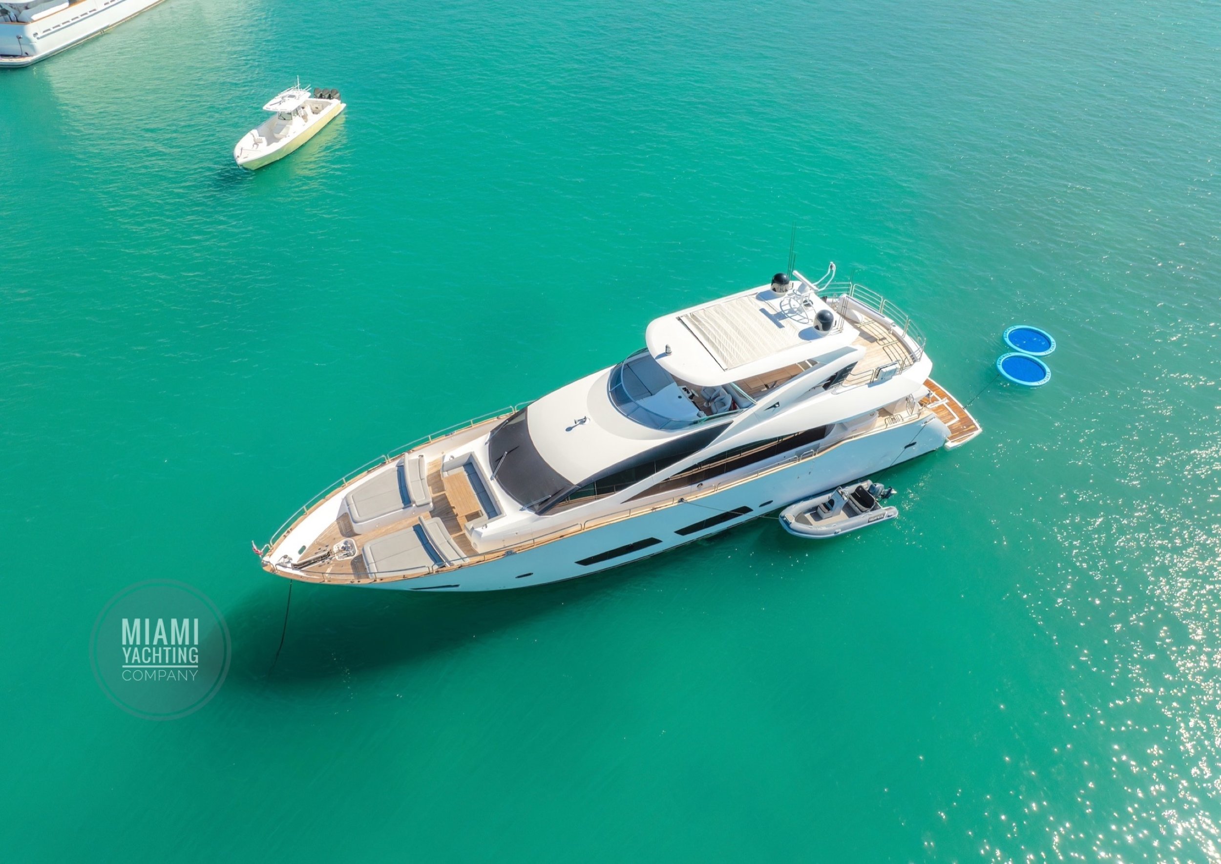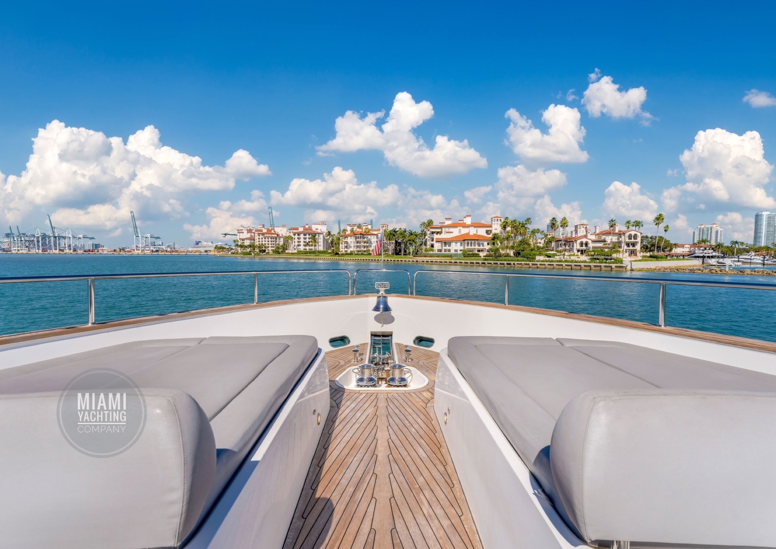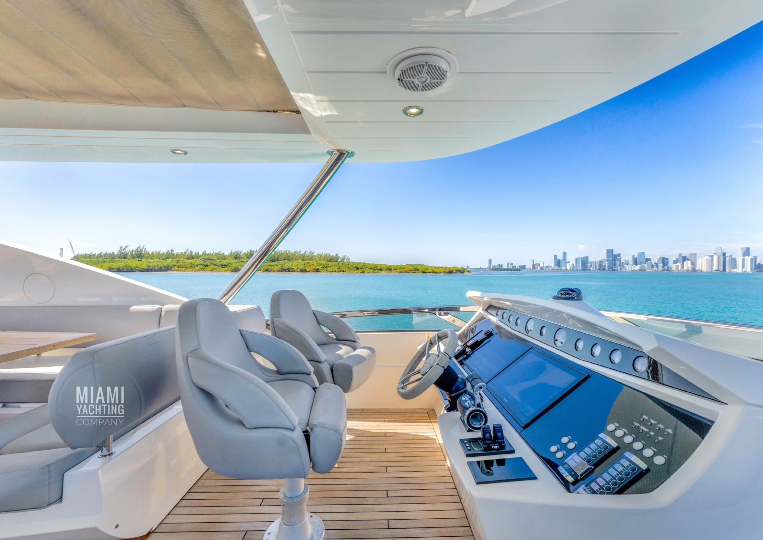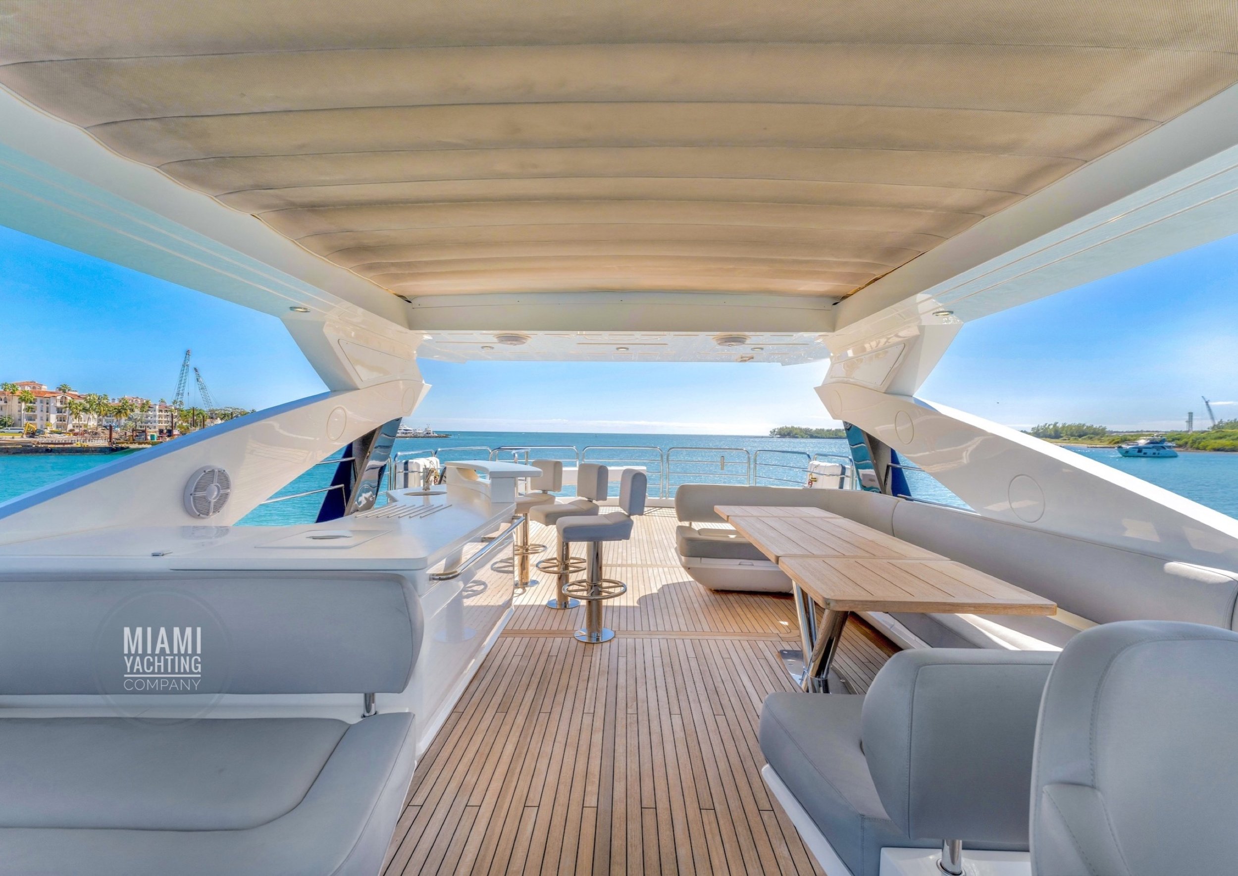Set sail on a remarkable adventure aboard this 92 ft Sunseeker flybridge yacht, a premier choice for your next Miami yacht rental adventure. With its striking exterior design and powerful performance, this luxurious vessel delivers an unforgettable experience in the warm waters of Miami. Enjoy the expansive flybridge, complete with panoramic views and ample space for sunbathing and al fresco dining, making it the ideal platform to explore the vibrant Miami coastline and renowned South Florida hotspots. Whether you’re looking to entertain guests or simply relax in style, this yacht is engineered to elevate your experience every step of the way.