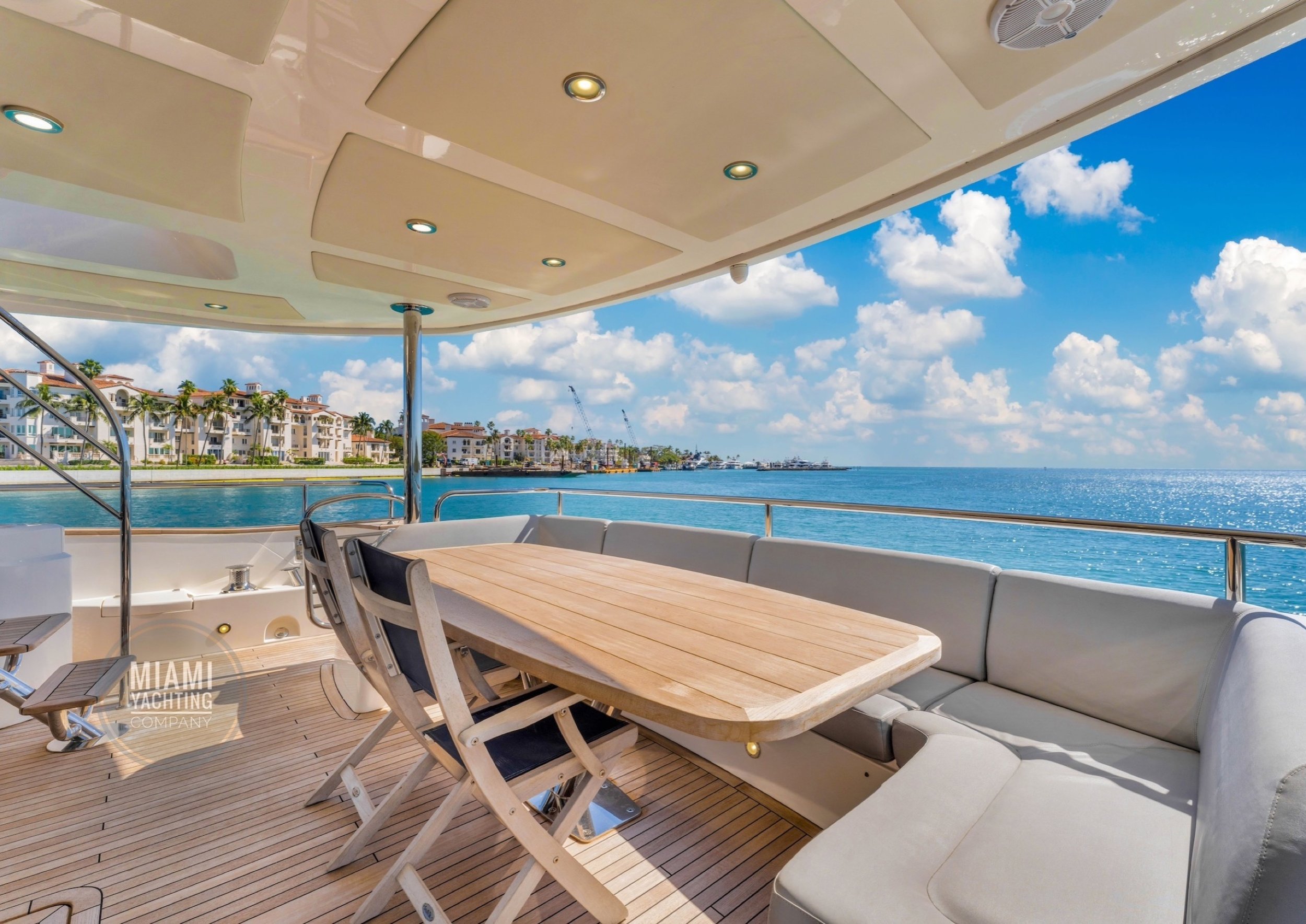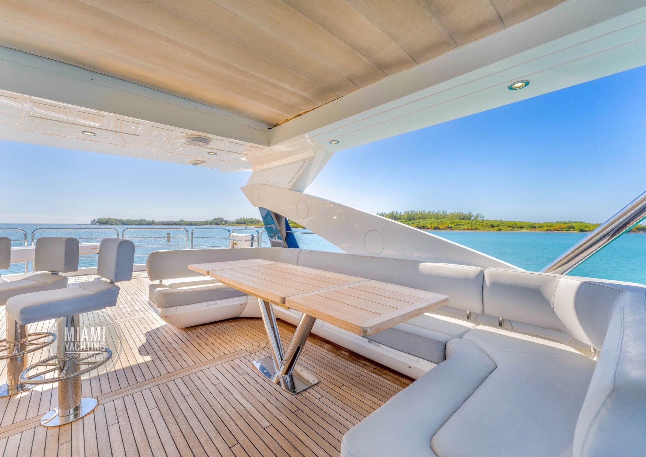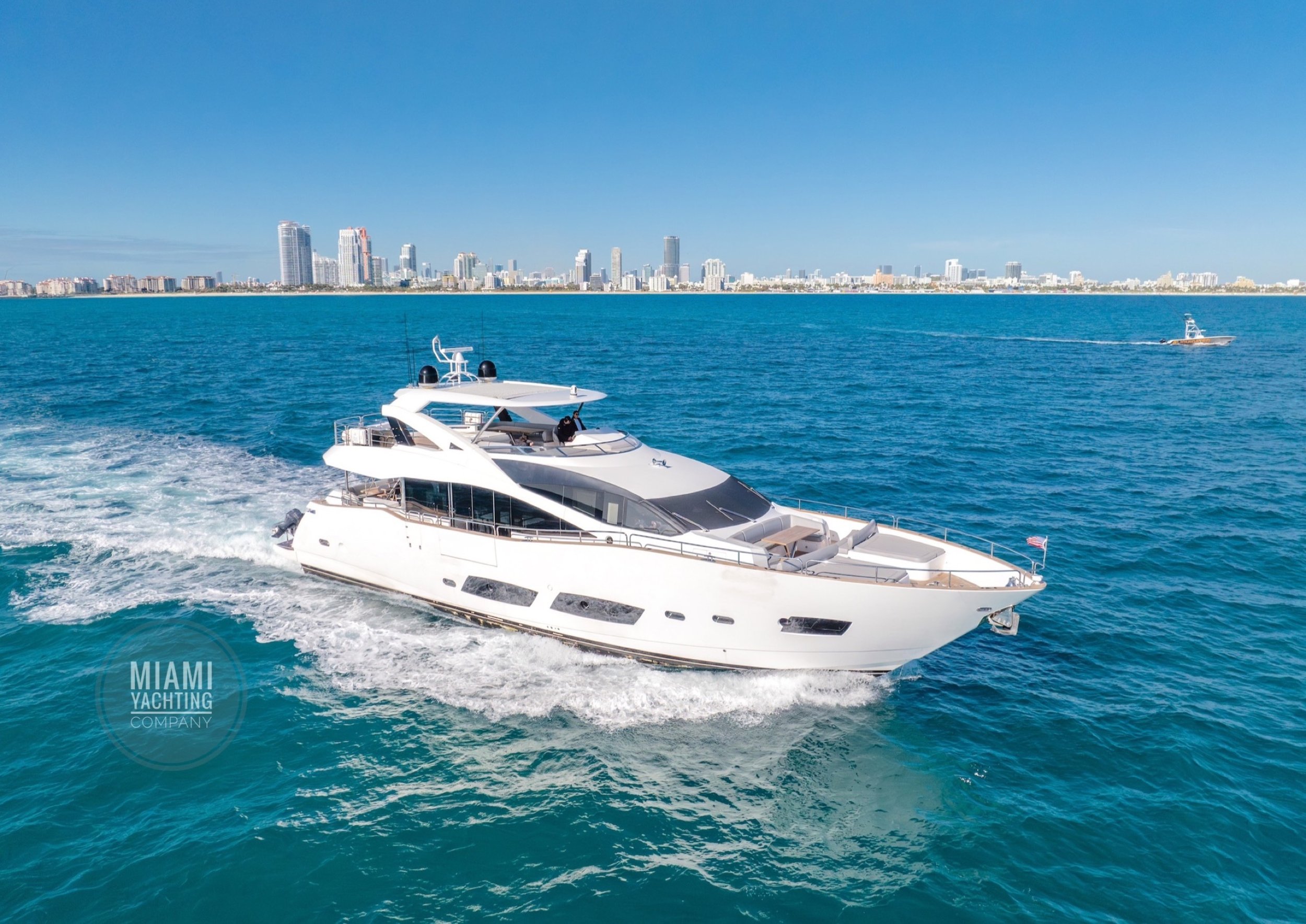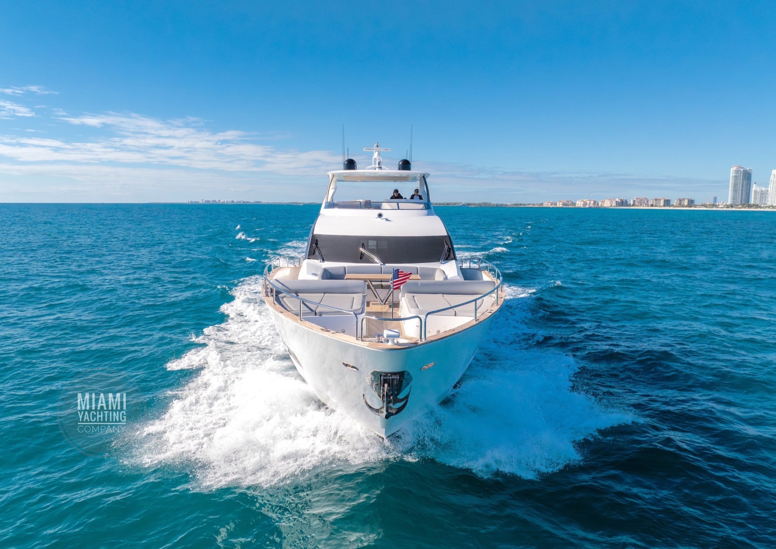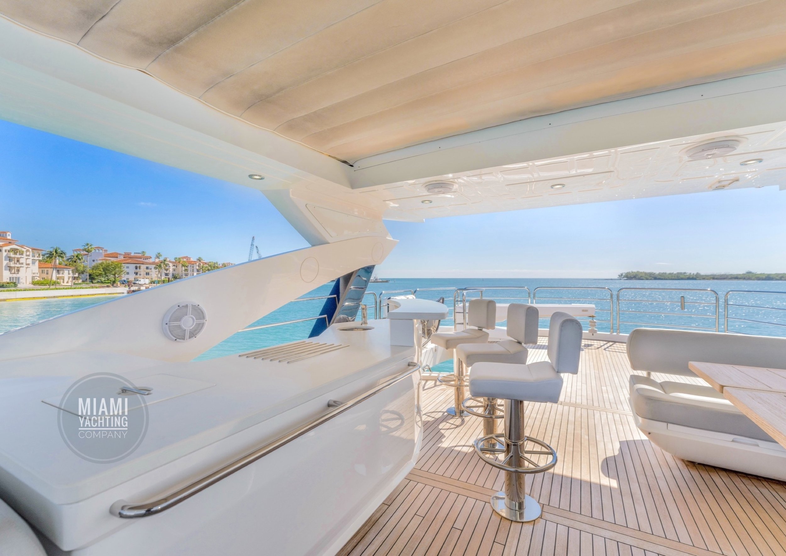 Set sail on a remarkable adventure aboard this 92 ft Sunseeker flybridge yacht, a premier choice for your next Miami yacht rental adventure. With its striking exterior design and powerful performance, this luxurious vessel delivers an unforgettable experience in the warm waters of Miami. Enjoy the expansive flybridge, complete with panoramic views and ample space for sunbathing and al fresco dining, making it the ideal platform to explore the vibrant Miami coastline and renowned South Florida hotspots. Whether you’re looking to entertain guests or simply relax in style, this yacht is engineered to elevate your experience every step of the way.