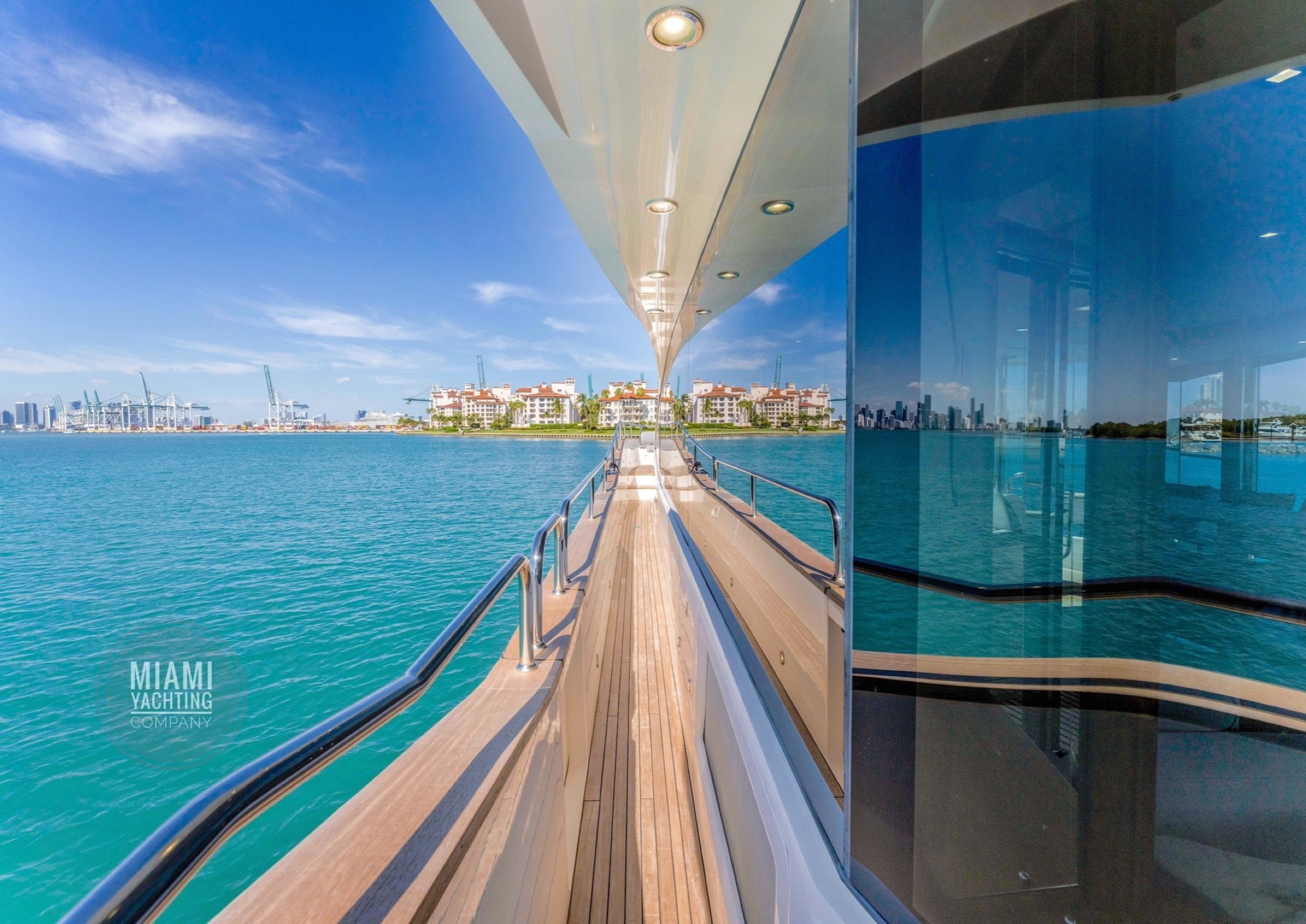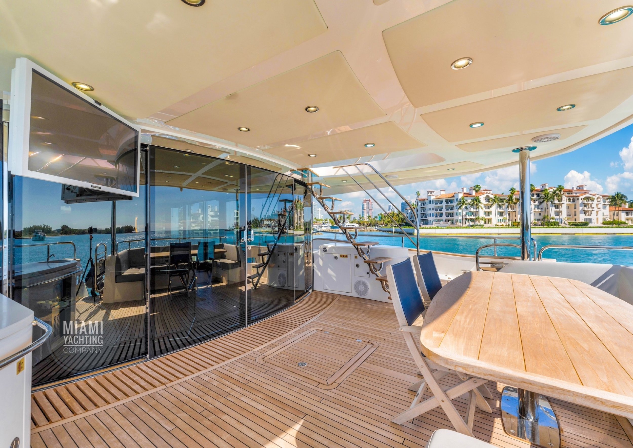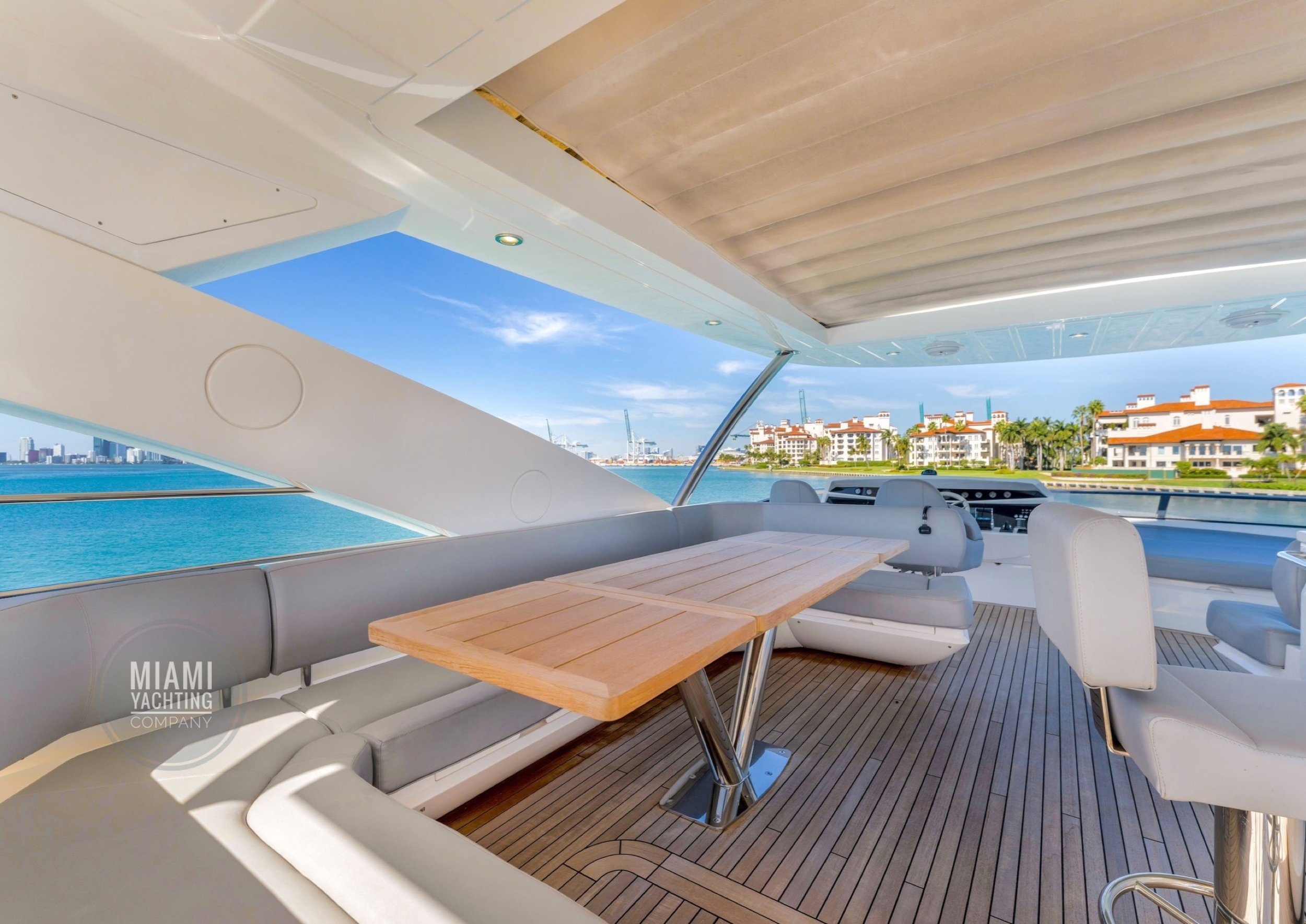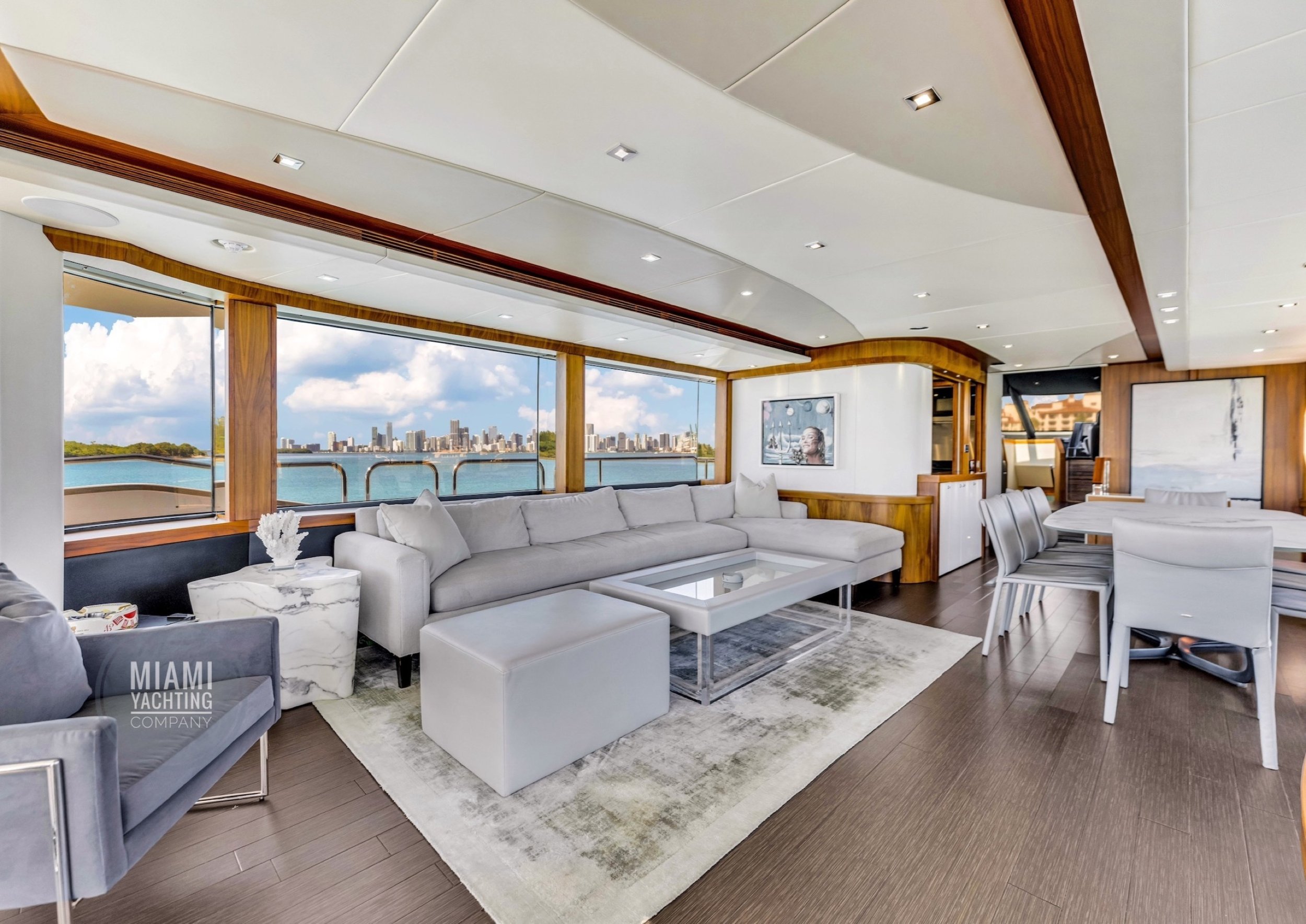 Set sail on a remarkable adventure aboard this 92 ft Sunseeker flybridge yacht, a premier choice for your next Miami yacht rental adventure. With its striking exterior design and powerful performance, this luxurious vessel delivers an unforgettable experience in the warm waters of Miami. Enjoy the expansive flybridge, complete with panoramic views and ample space for sunbathing and al fresco dining, making it the ideal platform to explore the vibrant Miami coastline and renowned South Florida hotspots. Whether you’re looking to entertain guests or simply relax in style, this yacht is engineered to elevate your experience every step of the way.