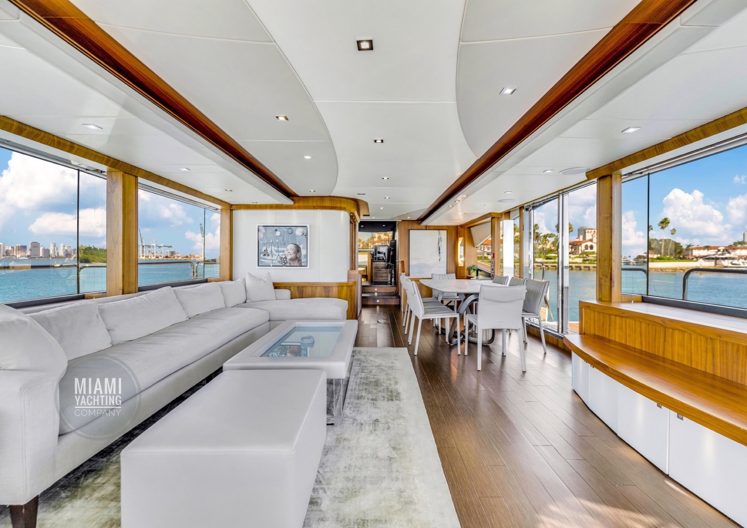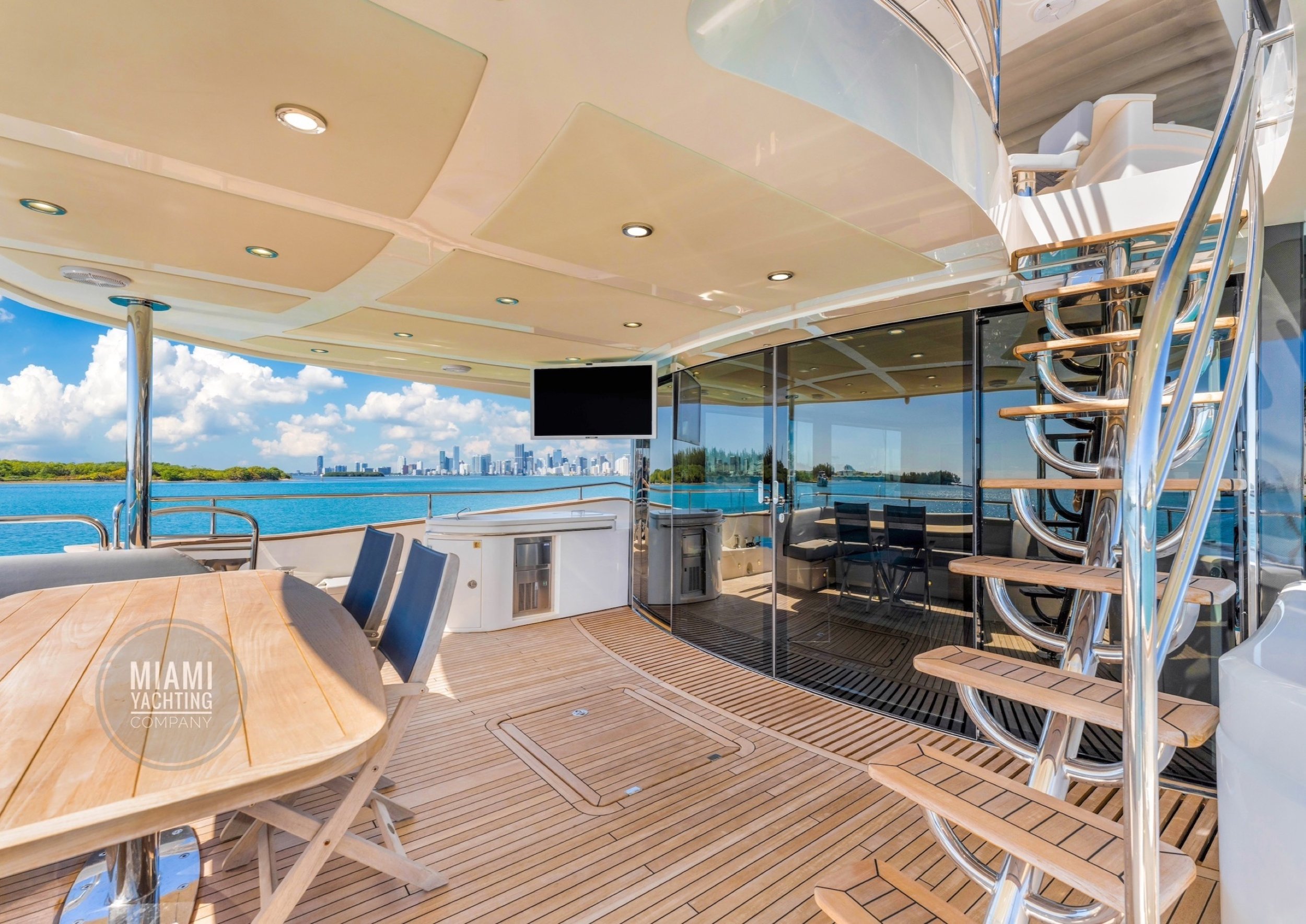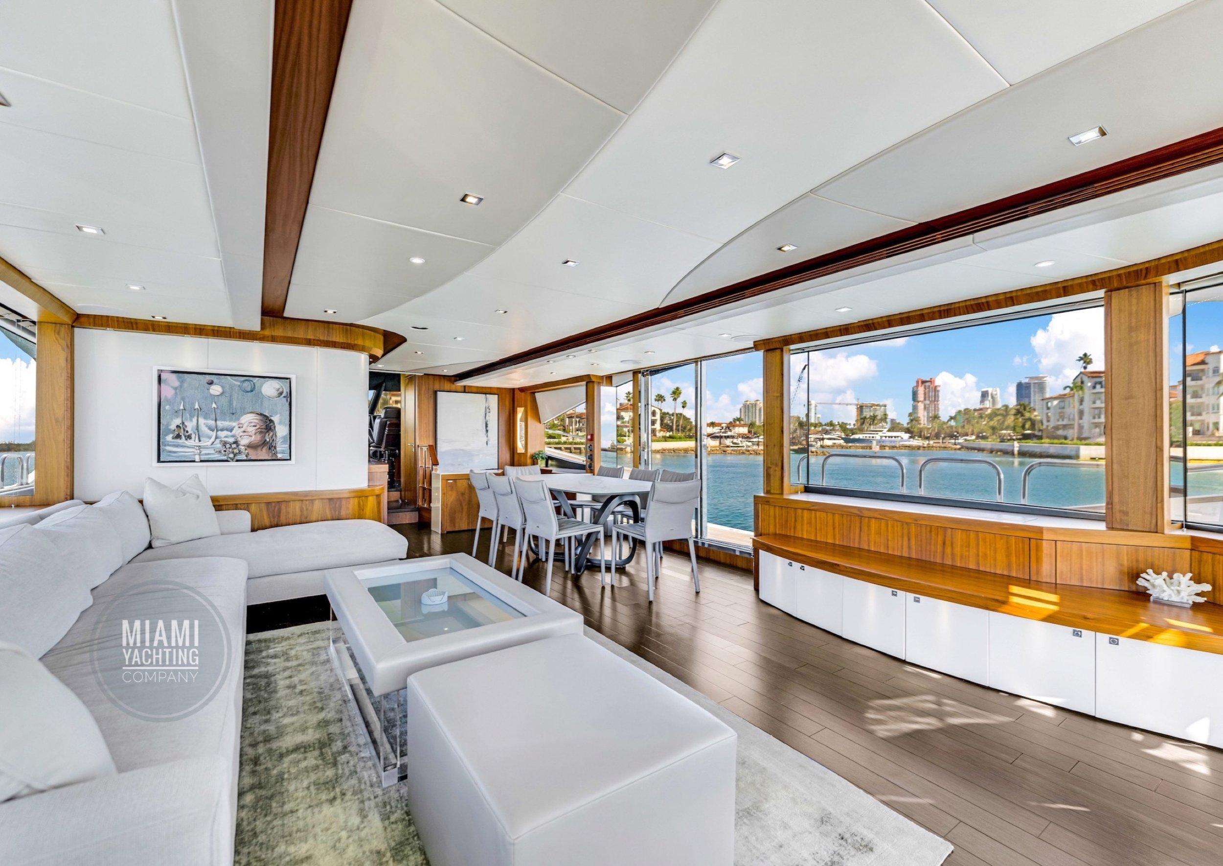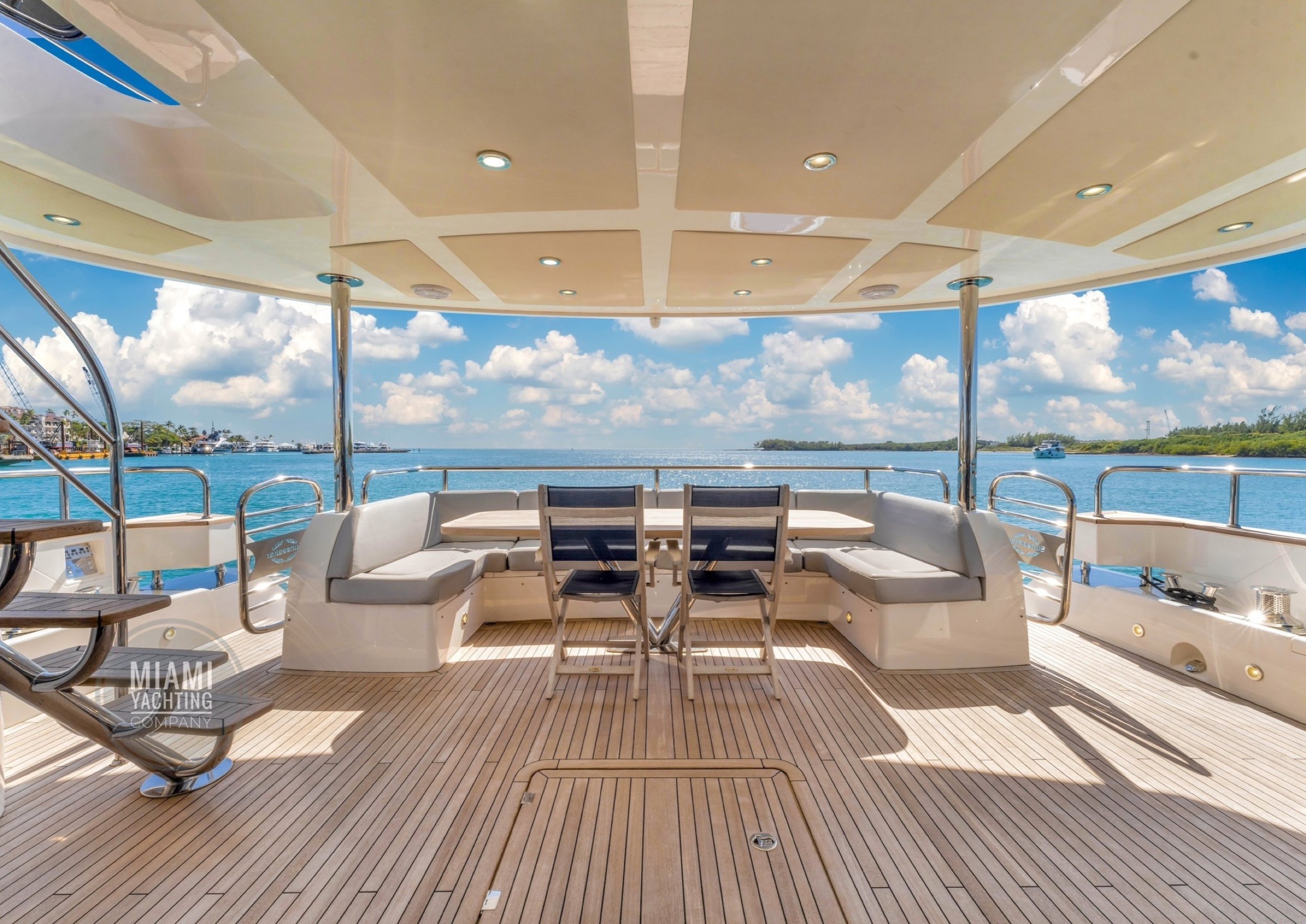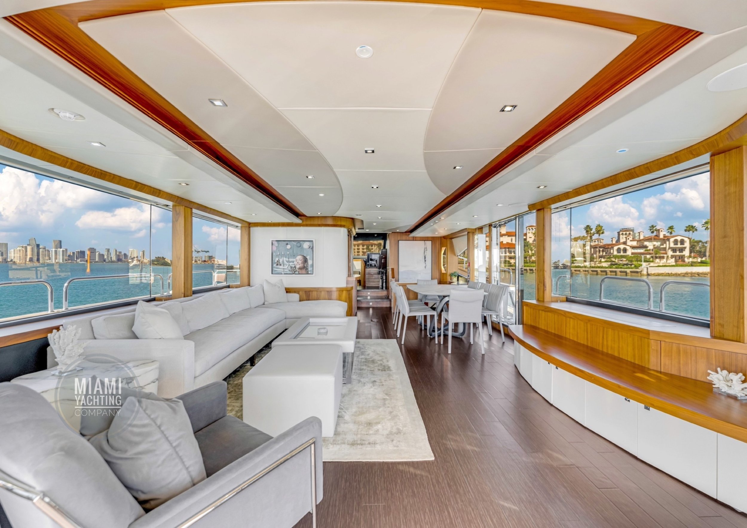 Set sail on a remarkable adventure aboard this 92 ft Sunseeker flybridge yacht, a premier choice for your next Miami yacht rental adventure. With its striking exterior design and powerful performance, this luxurious vessel delivers an unforgettable experience in the warm waters of Miami. Enjoy the expansive flybridge, complete with panoramic views and ample space for sunbathing and al fresco dining, making it the ideal platform to explore the vibrant Miami coastline and renowned South Florida hotspots. Whether you’re looking to entertain guests or simply relax in style, this yacht is engineered to elevate your experience every step of the way.