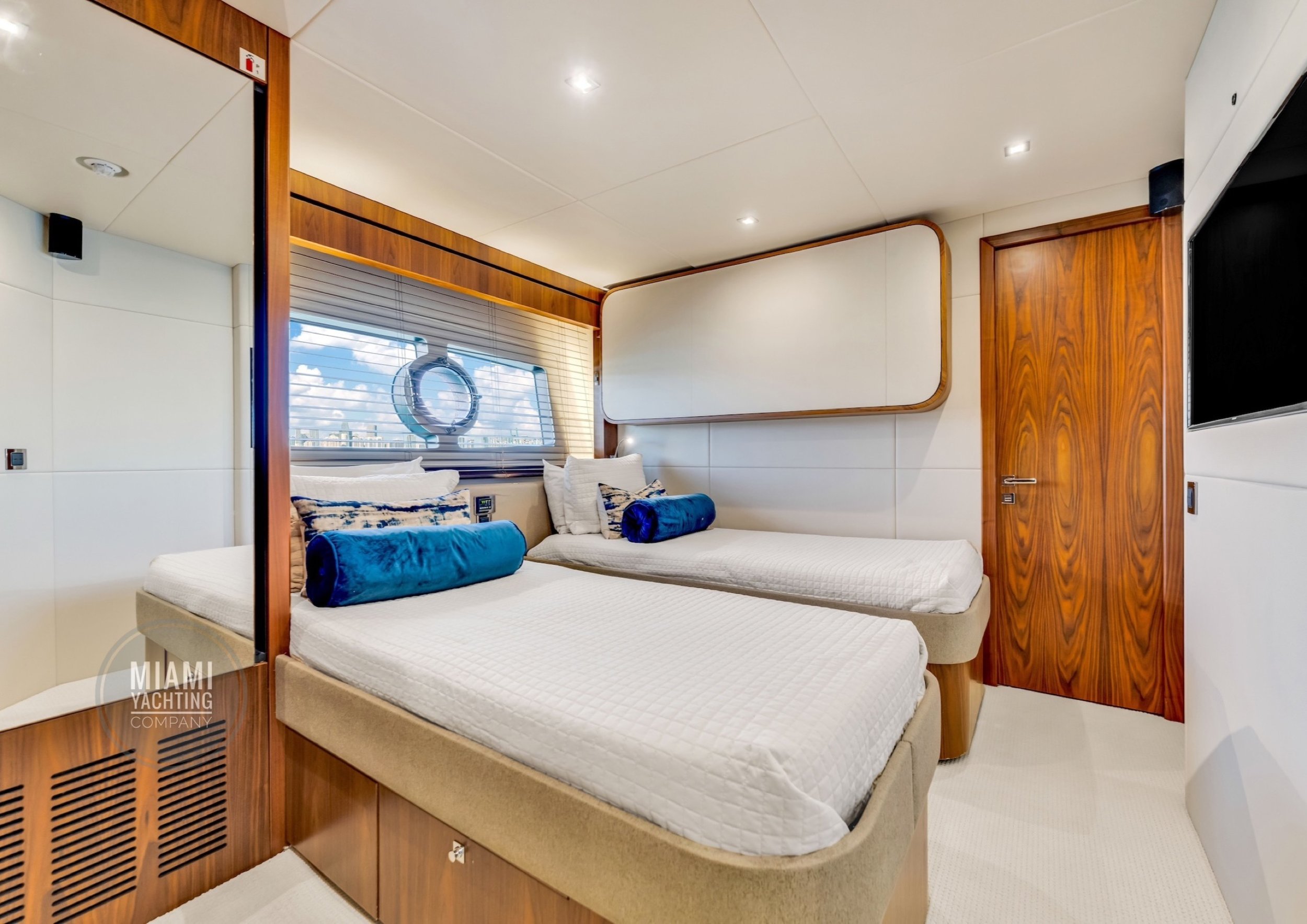Step below deck to discover a world of refined elegance where every detail has been thoughtfully designed for comfort and sophistication. The spacious saloon, chic dining area, and tastefully appointed cabins create an inviting retreat after a day of cruising. Perfect for those planning a high-end luxury yacht charter in Miami, this vessel offers the ultimate combination of performance, style, and luxury. If you’re ready to rent a yacht in Miami, Miami Beach or Key Biscayne and indulge in a truly exclusive experience, book your next adventure on this magnificent Sunseeker yacht and embrace the finest that South Florida has to offer.